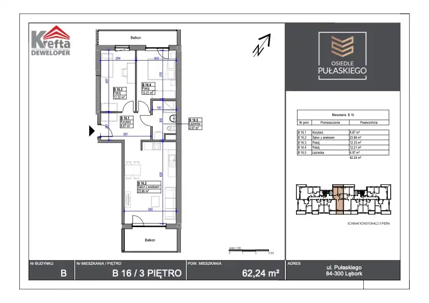 Osiedle Pułaskiego w Lęborku – Nowoczesne Mieszkania 2- i 3-Pokojowe od 43 do 63 m²