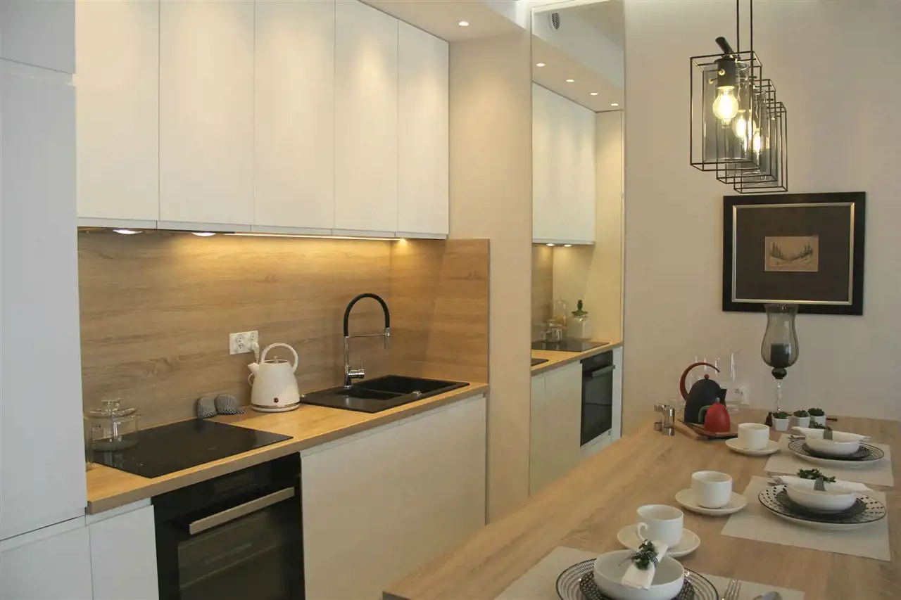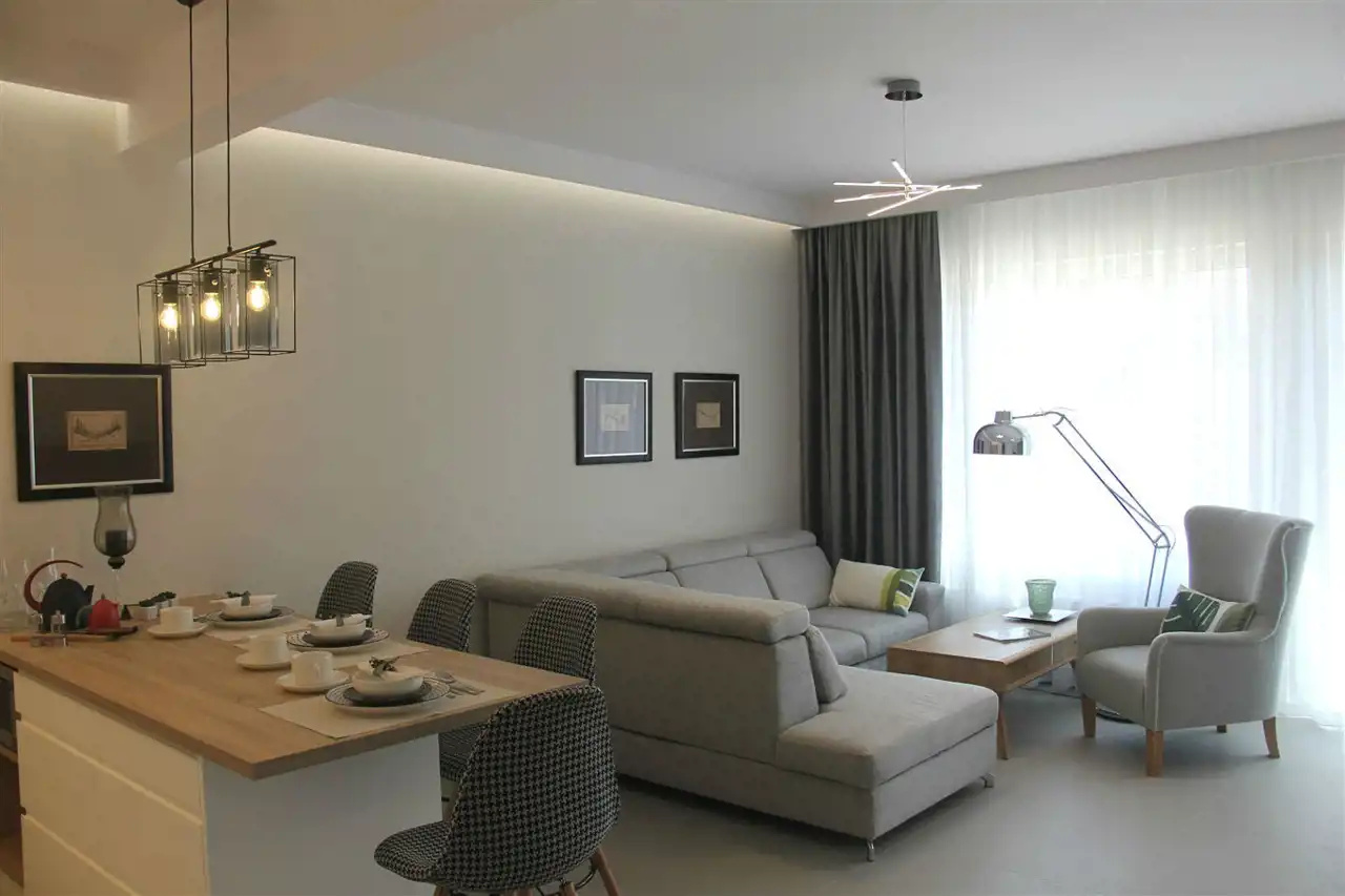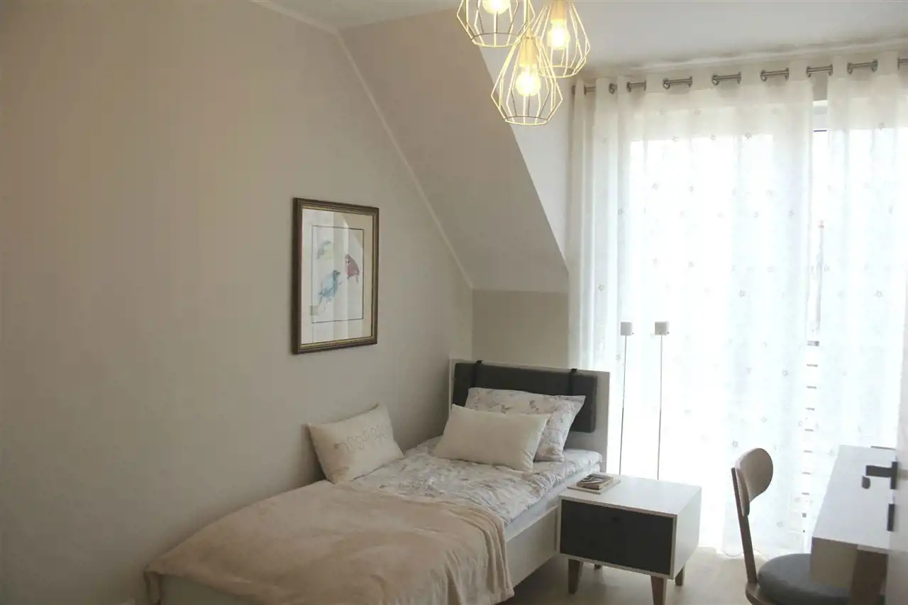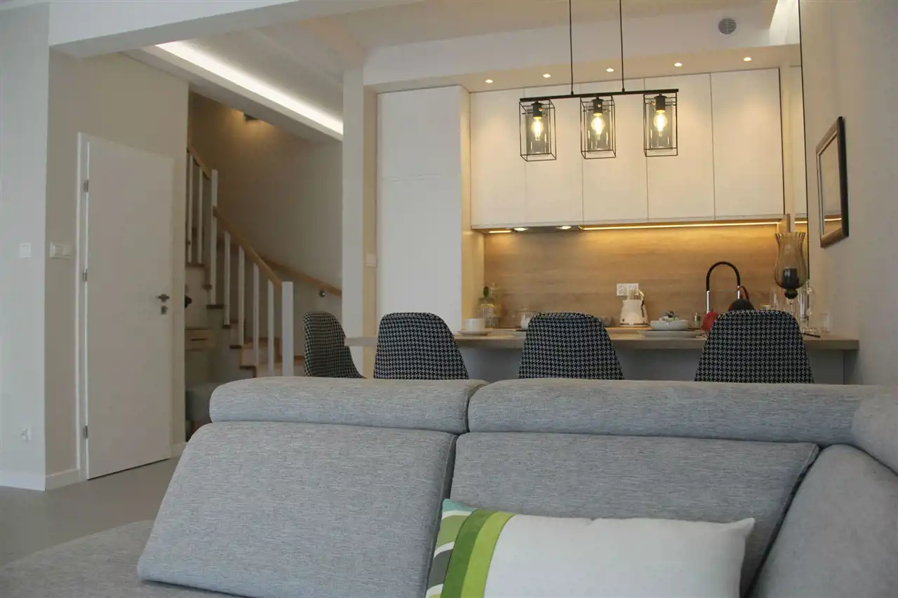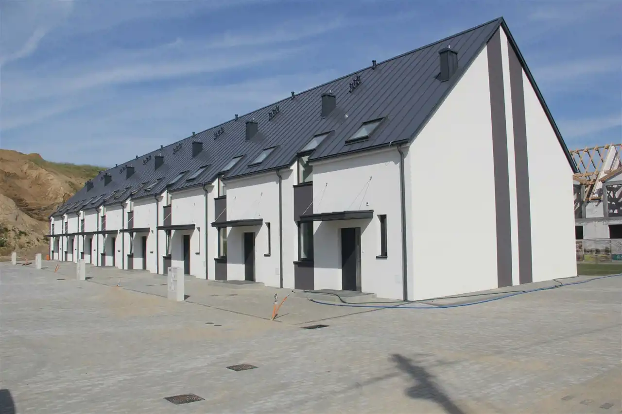 Oferujemy do sprzedaży atrakcyjne apartamenty w zabudowie szeregowej z ogrodami usytuowane przy ulicy Dworcowej na nowo powstającym osiedlu domów jednorodzinnych zaledwie 2,5 km od centrum Lęborka . Nieruchomość składa z parteru w skład którego wchodzi wiatrołap o powierzchni 4,11 m2, pomieszczenie gospodarcze 1,55 m2, WC 3,38 m2, hol i schody 8 m2, salon z aneksem kuchennych 30,73 m2. Na pierwszej kondygnacji znajdują się trzy sypialnie o powierzchni 13,64 m2, 11,36 m2 i 10,77 m2 , hall 12,18 m2, łazienka 4,72 m2. Domy wykonane są z materiałów najwyższej jakości i zastosowaniem najwyższych standardów, wszystkie posiadają niezbędne atesty i gwarancje. Na standard nieruchomości składają się : posadzki zatarte na gładko, instalacja wodno kanalizacyjne, rozprowadzenie instalacji elektrycznej z zamontowanymi włącznikami oraz gniazd, rozprowadzona instalacja centralnego odkurzacza, na ścianach gładź gipsowa. Elewacja domu wykonana z tynków silikonowych, które są odporne na zabrudzenia i korozję mikrobiologiczną (powstawanie glonów i grzybów), tworzących oddychającą powłokę, która przepuszcza parę wodną i dwutlenek węgla. Budynki zaprojektowane został w nietuzinkowy sposób dbając o ich maksymalną funkcjonalność, komfort i wygodę przyszłych mieszkańców, czyniąc go jednocześnie eleganckim z zewnątrz jak i wewnątrz.