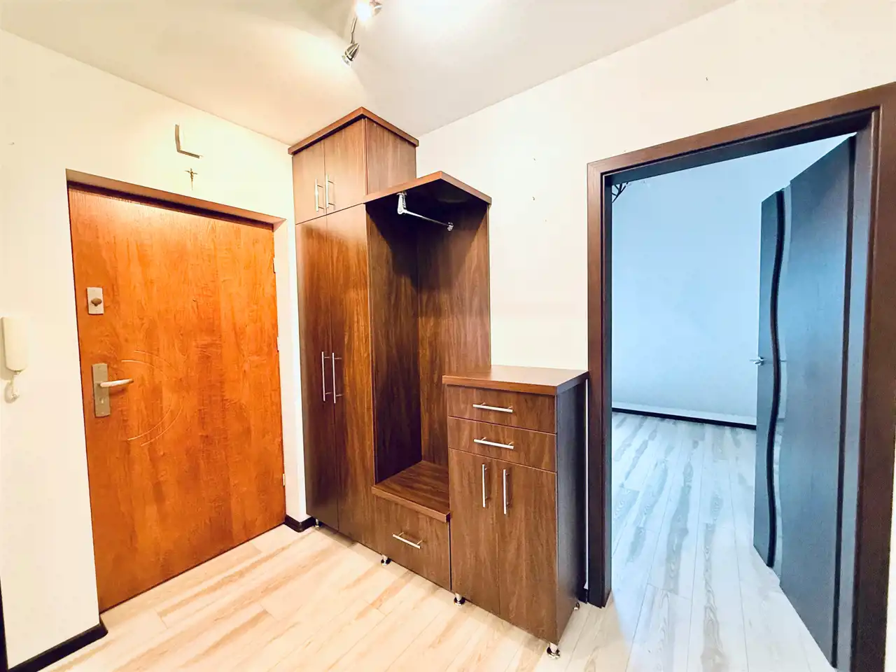 Duży przedpokój z miejscem na szafy w zabudowie,