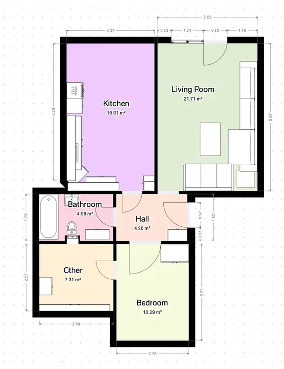 - Charakterystyka mieszkania 64.43 m2, 3 pokoje