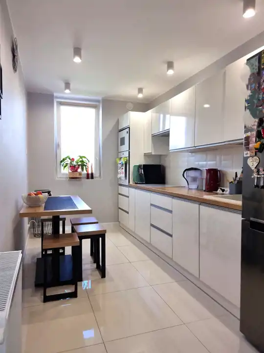 Komfortowy, przestronny, bezczynszowy apartament o powierzchni całkowitej 133,90m2, użytkowej 85,70m2, z garażem ok.27m2 (z poddaszem), przy którym znajduje się zagospodarowane ogrodzone i zadaszone miejsce na wypoczynek z grillem oraz działką obok bloku do wyłącznego użytku. Częściowo ogrodzona - ok. 460m2, gdzie można w ciszy i spokoju wypoczywać. Nieruchomość położona jest na zacisznym, spokojnym osiedlu w otulinie lasu, zaledwie 5km od centrum Lęborka (5min. samochodem), opodal drogi krajowej S6 (szybki dojazd do Trójmiasta) . Mieszkanie usytuowane jest na wysokim parterze jednopiętrowego czterorodzinnego budynku. Składa się z korytarza, przestronnego holu, oddzielnej, widnej, otwartej zabudowanej kuchni ze sprzętem AGD, nowoczesnego salonu (z ledowym oświetleniem), z wyjściem na duży balkon, sypialni z szafą typu komandor, pokoju dziecinnego oraz łazienki z wanną i prysznicem oraz oddzielnego wc. Mieszkanie jest po generalnym remoncie (wyremontowane od podstaw w 2016 roku) "robione dla siebie" - można od razu zamieszkać, nie wymaga żadnych nakładów finansowych. Wymieniono instalacje hydrauliczne, elektryczne, okna trzyszybowe oraz drzwi wewnętrzne i zewnętrzne. Do mieszkania przynależy duża piwnica składająca się z dwóch pomieszczeń: w pierwszej znajduje się dwuletni bardzo oszczędny piec na ekogroszek 5 klasy, z bezprzewodowym termostatem, a drugą część można połączyć z mieszkaniem i zaadaptować np. na garderobę.Reasumując ze względu na wspomniane atuty, oferta jest godna polecenia.