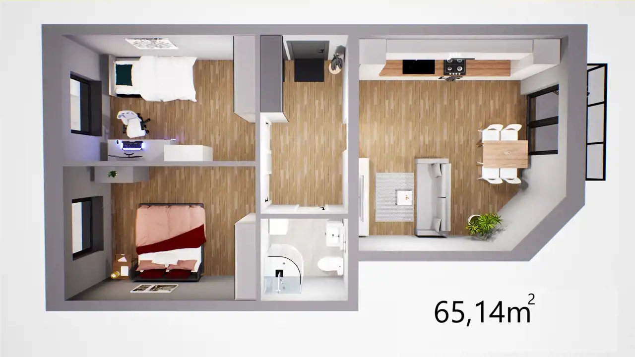 - Charakterystyka mieszkania 65 m2, 3 pokoje