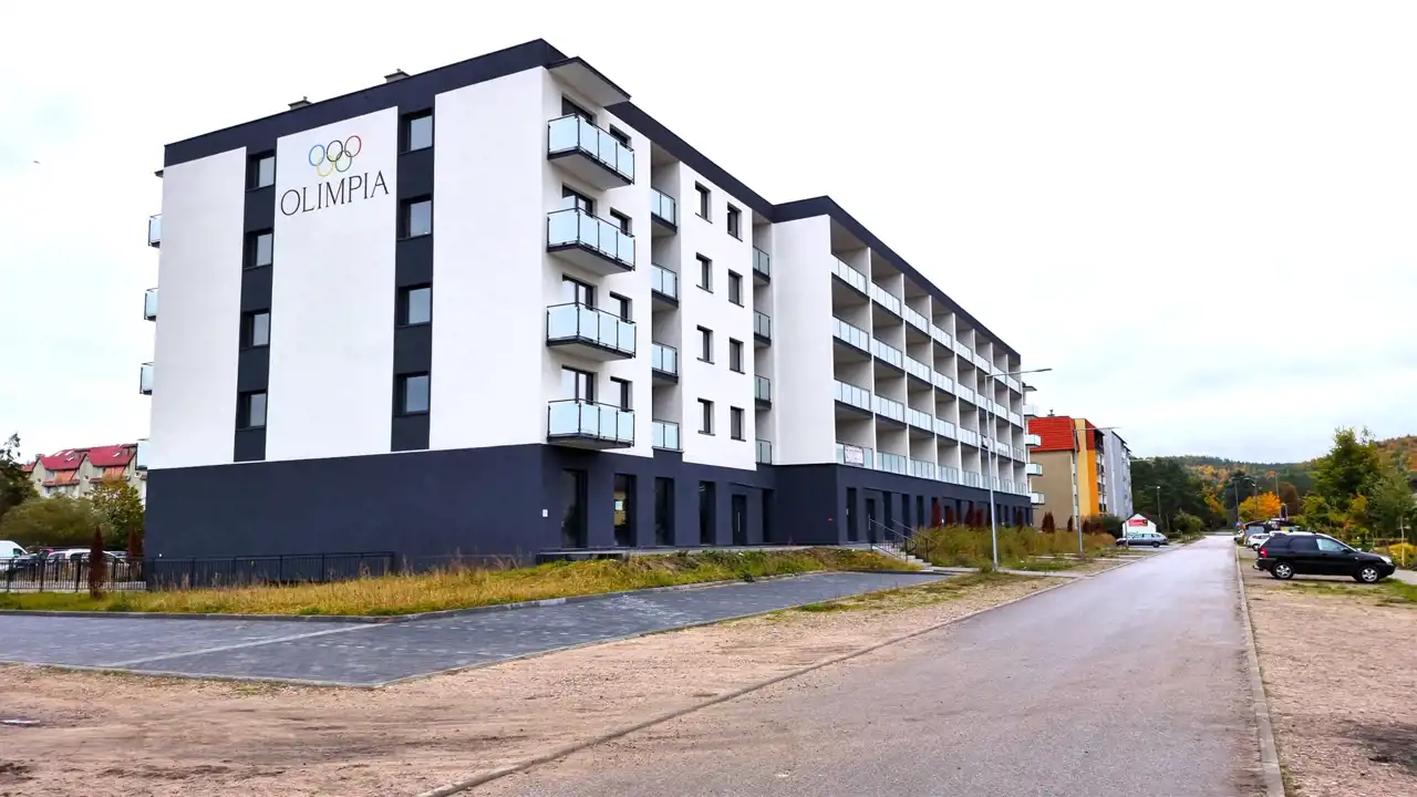 Nowoczesny, komfortowy apartament o powierzchni 49,40m2 z balkonem, położony na trzecim piętrze, do którego dotrzemy windą, zlokalizowany w Lęborku przy ul. Olimpijczyków (opodal basenu oraz stadionu miejskiego) w nowopowstałym kompleksie "Osiedle Olimpia". Mieszkanie zostaje praktycznie z całym wyposażeniem (w opcji) - wystarczy wziąć walizkę i zamieszkać - co pozwala zaoszczędzić dodatkowe nakłady finansowe. Lokal składający się z przedpokoju, pokoju dziennego z aneksem kuchennym, dwóch sypialni oraz łazienki z wanną i WC. Do mieszkania przynależy miejsce parkingowe. Nieruchomość znajduje się w nowym budynku, wykonanym najnowocześniejszą technologią gwarantującą wysoką energooszczędność, czyniąc go jednocześnie eleganckim z zewnątrz, jak i wewnątrz oraz dbając o jego maksymalną funkcjonalność, komfort i wygodę mieszkańców. W niedalekiej odległości od lasu, marketów wielkopowierzchniowych, restauracji McDonald's, KFC i stacji kolejowej.