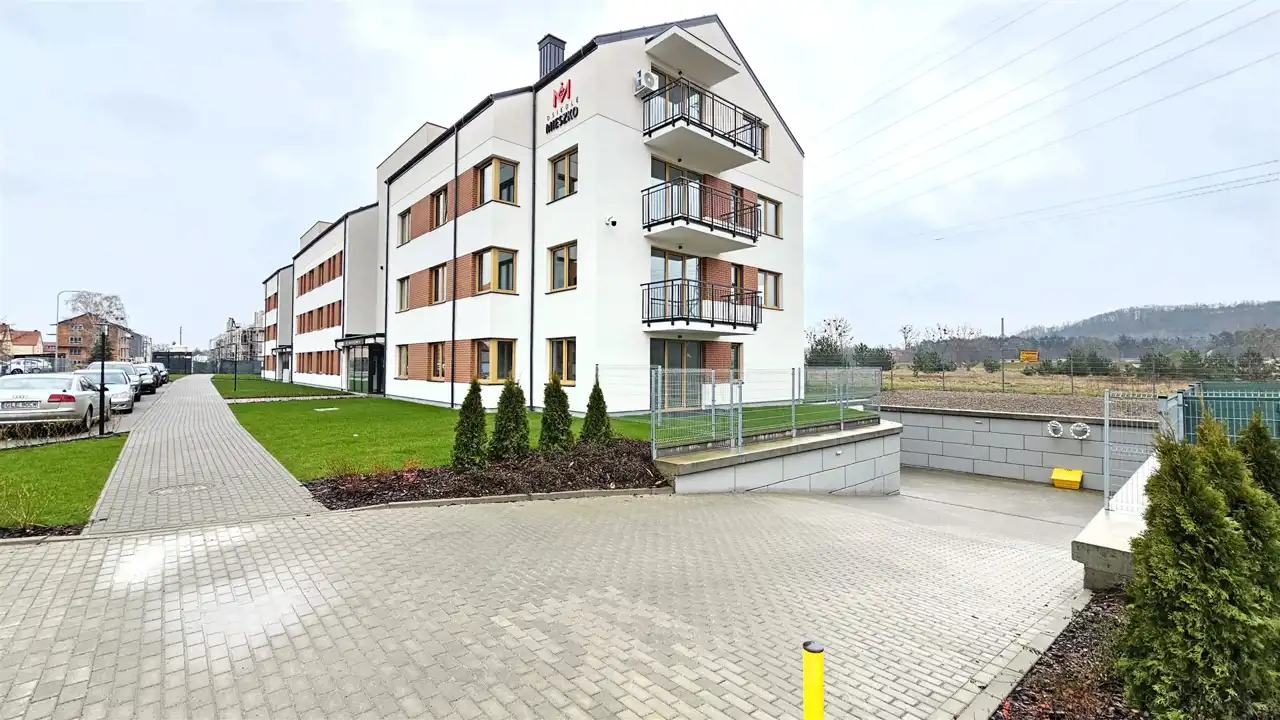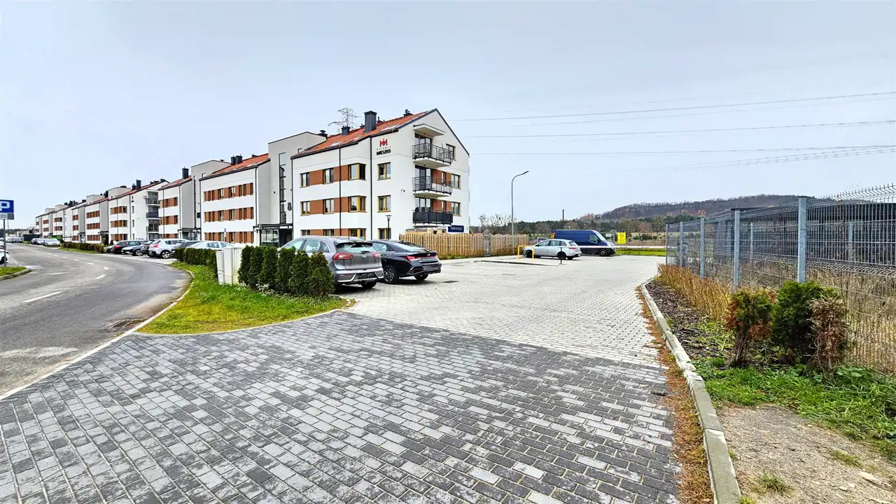 Atrakcyjny, komfortowy apartament z dużym balkonem o powierzchni całkowitej 49,97m2, użytkowej 45,70m2 zlokalizowany w Lęborku przy ul. Władysława IV (opodal lasu, basenu oraz stadionu miejskiego). Lokal usytuowany jest na trzecim piętrze w nowoczesnym kompleksie mieszkalnym "Mieszko", na które wygodnie dostaniemy się windą, funkcjonującą od najniższego (przyziemia) do najwyższego piętra. Lokal składa się z przedpokoju, słonecznego pokoju dziennego połączonego z aneksem kuchennym i wyjściem na w/w balkon, sypialni oraz łazienki z WC i prysznicem. Do mieszkania przynależy również komórka lokatorska (za dodatkową opłatą 12.000zł) oraz miejsce parkingowe w hali garażowej (za dodatkową opłatą 69.000zł). Nieruchomość znajduje się w nowopowstałym budynku, wykonanym najnowocześniejszą technologią gwarantującą wysoką energooszczędność, czyniąc go jednocześnie eleganckim z zewnątrz, jak i wewnątrz oraz dbając o jego maksymalną funkcjonalność, komfort i wygodę mieszkańców. W niedalekiej odległości od wspomnianego lasu, marketów wielkopowierzchniowych, restauracji McDonald's, KFC i stacji kolejowej. Ze względu na wysoki standard, stosunkowo niski czynsz, super położenie oraz bliskość ekspresowej drogi krajowej S6, łączącej Trójmiasto - Szczecin (w chwili obecnej dojazd do Gdyni to tylko około 35 min, a po oddaniu odcinka Leśnice – Bożepole Wielkie dojazd do Gdyni skróci się do ok 25 minut), oferta jest godna polecenia.