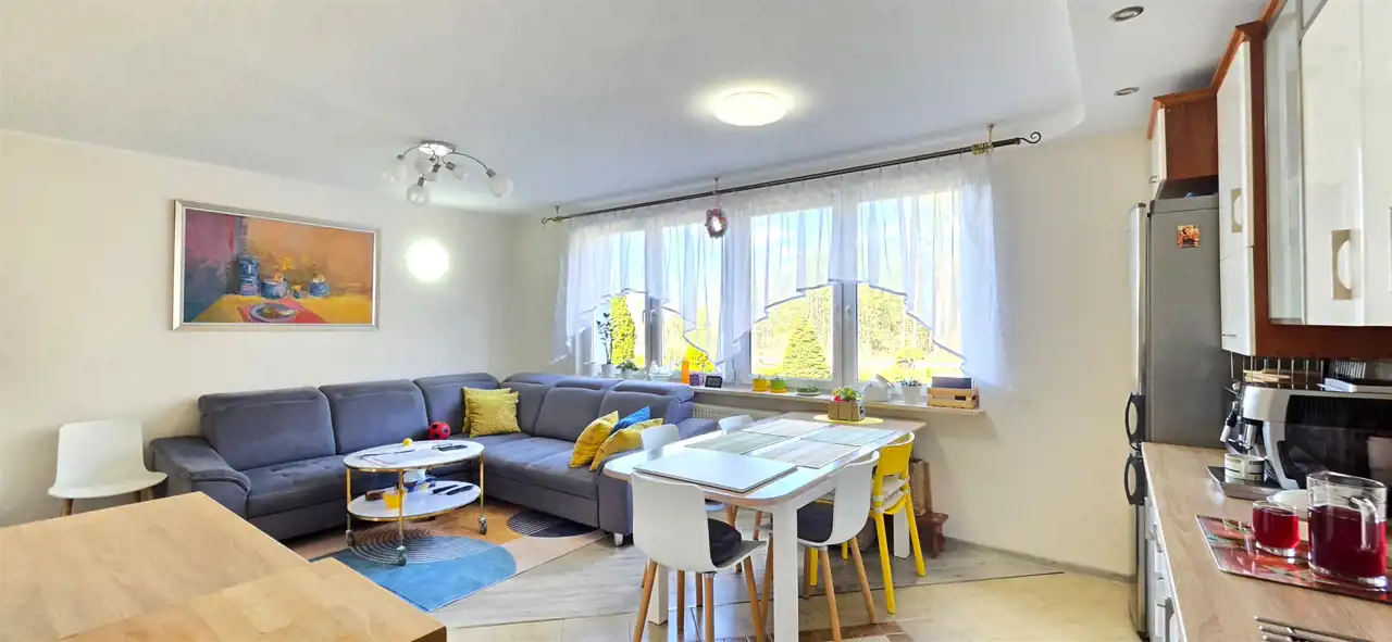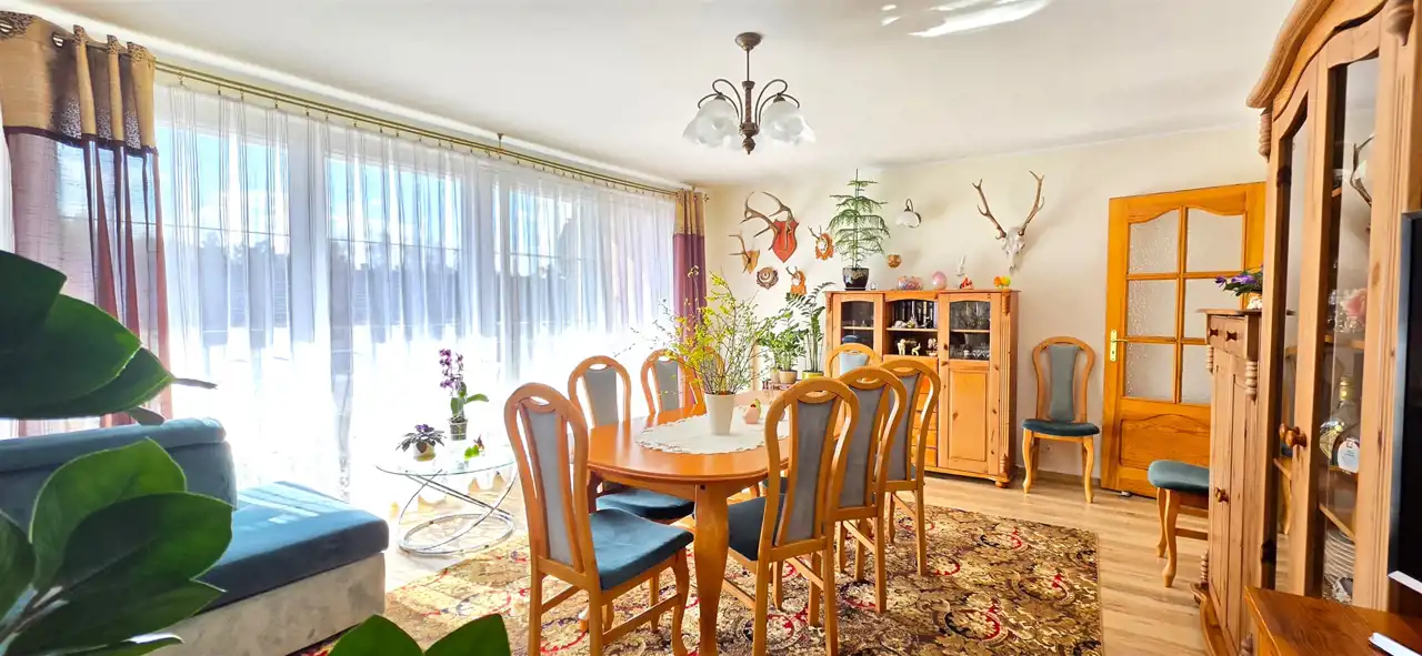 Bezczynszowe, komfortowe mieszkanie w otulinie lasu o powierzchni użytkowej 86m2, z garażem (ok. 25m2) i stryszkiem z automatyczną bramą wjazdową i działką z altanką - idealne miejsce na spędzanie czasu z rodziną i przyjaciółmi oraz wypoczynek na świeżym powietrzu. Zlokalizowane w urokliwej miejscowości Leśnice - ok. 5km od centrum Lęborka, opodal drogi krajowej S6, zapewniającej szybki dojazd do Trójmiasta i Słupska. Usytuowane na wysokim parterze w dwupiętrowym bloku. Nie wymaga natychmiastowych nakładów finansowych, można od razu zamieszkać, a z czasem zaaranżować pod swój gust i potrzeby. Składa się z holu z funkcjonalną zabudową, słonecznego pokoju dziennego połączonego z aneksem kuchennym, dwóch sypialni, w tym jedna z dużym balkonem, łazienki z wanną oraz oddzielnego WC. Do nieruchomości przynależy w/w atrakcyjna działka, drewutnia oraz duża piwnica z trzema pomieszczeniami, gdzie znajduje się piec na pellet i spiżarnia. W mieszkaniu zainstalowano również ogrzewanie podłogowe (hol, pokój dzienny połączony z aneksem kuchennym, łazienka, WC) i domofon zapewniający mieszkańcom wygodę w użytkowaniu. Opodal znajduje się szkoła podstawowa, kościół, przystanek PKP oraz rozległe tereny leśne. To idealna inwestycja dla klientów chcących odpocząć od zgiełku miejskiego, mieszkając jednocześnie w niedalekiej odległości od miasta. Reasumując ze względu na brak czynszu, wspomniane atuty oraz bliskość ekspresowej drogi krajowej S6, łączącej Trójmiasto - Szczecin, oferta jest godna polecenia.