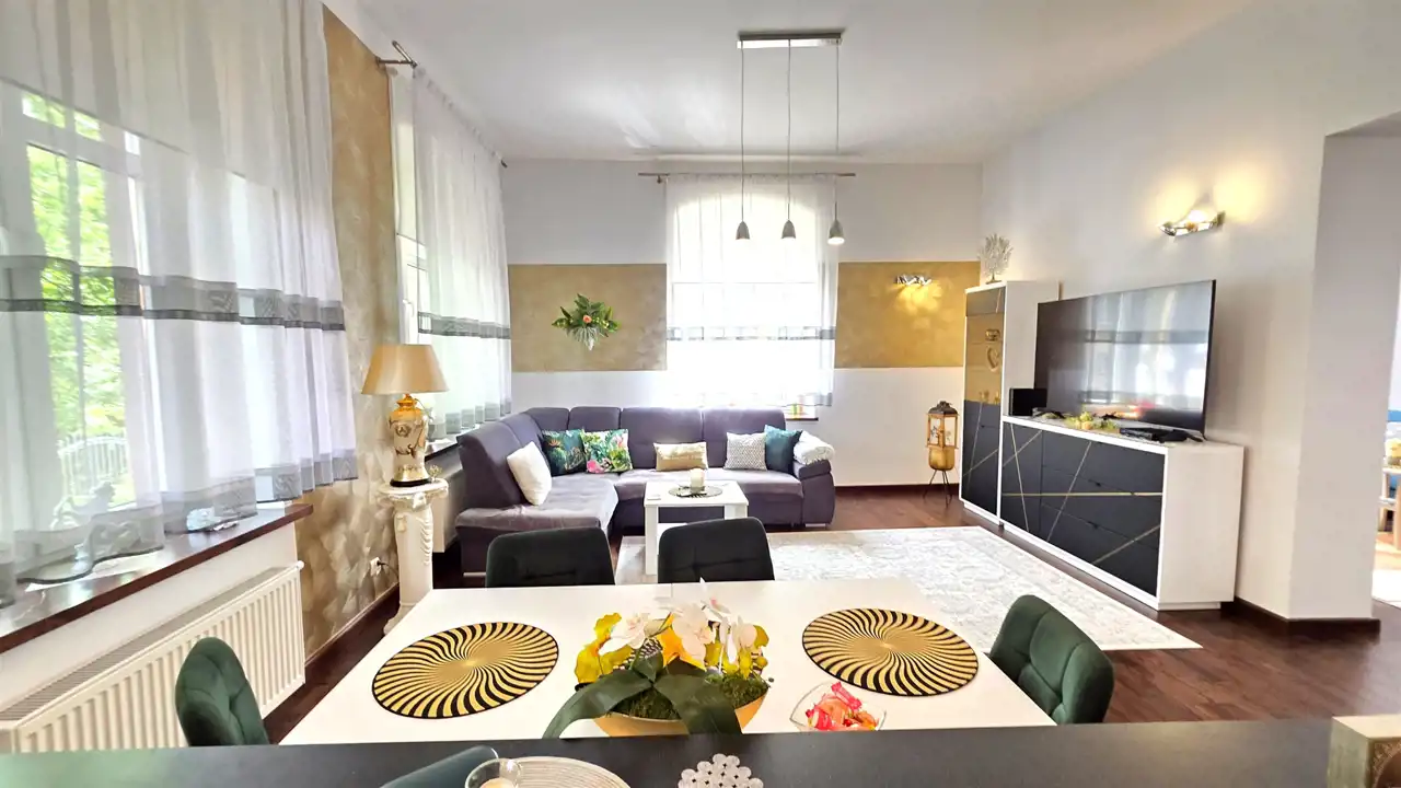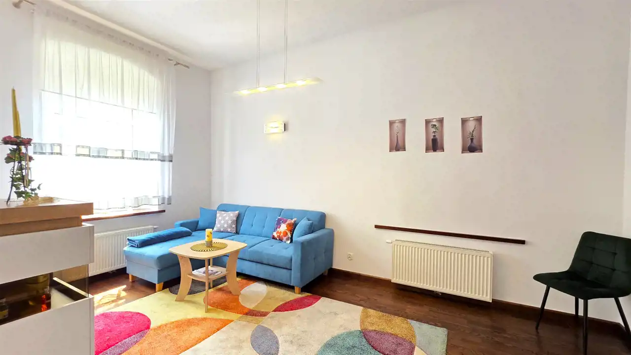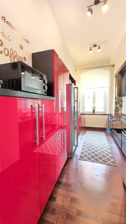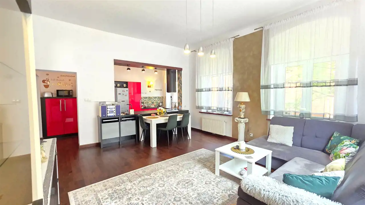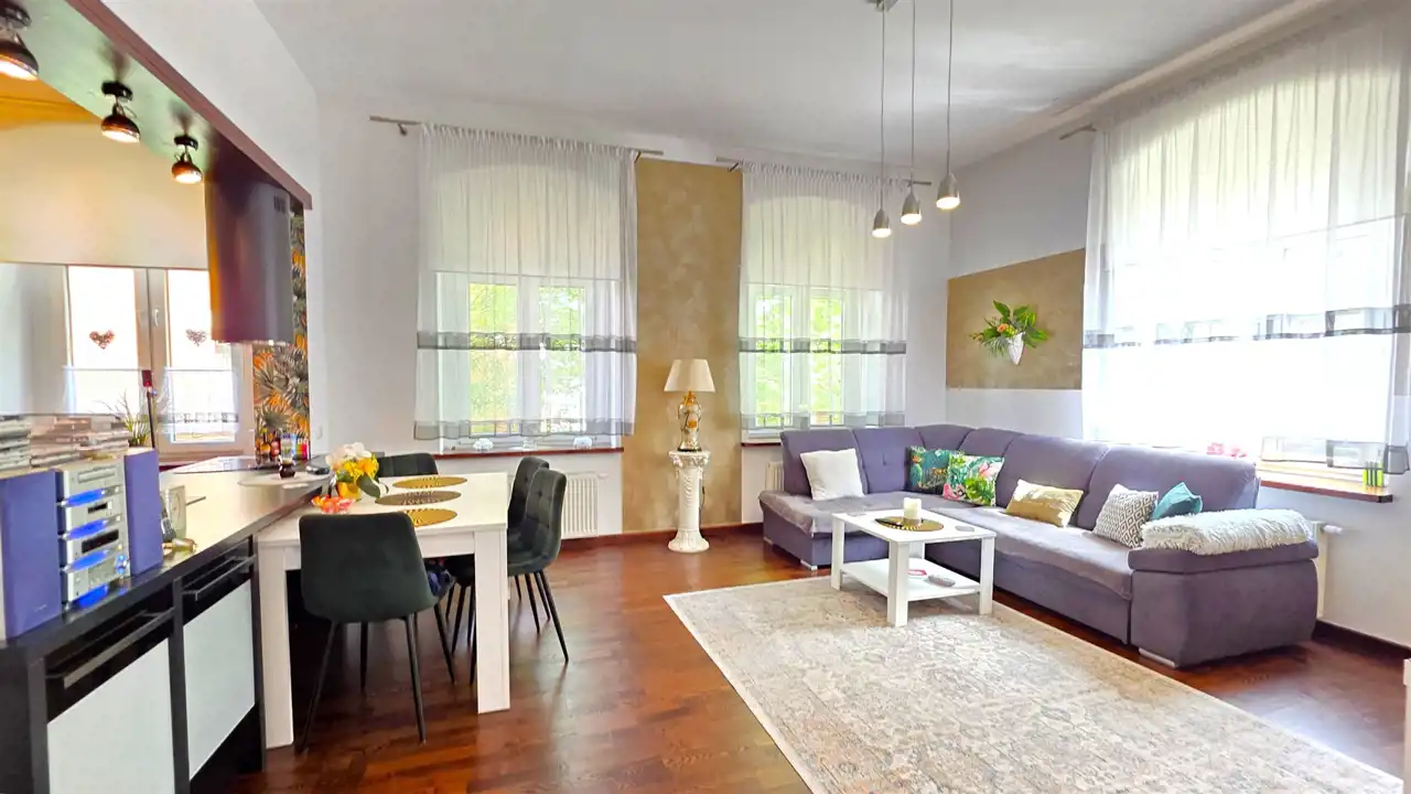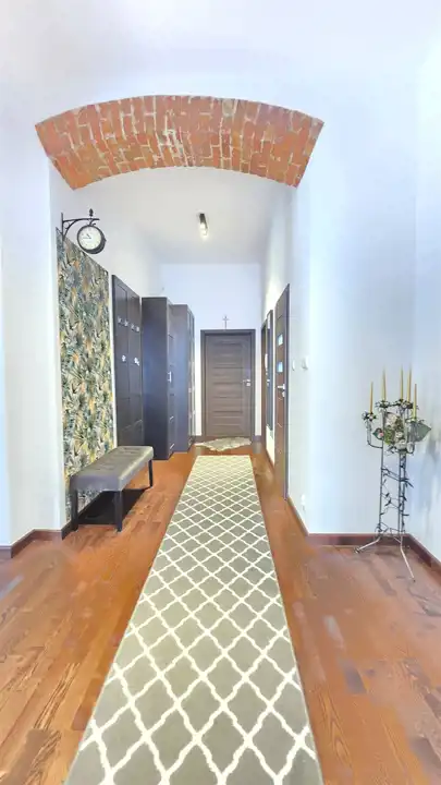 Przestronne, nietuzinkowe mieszkanie o powierzchni 88,40m2, położone w ścisłym centrum Lęborka przy ulicy Armii Krajowej (vis a vis Urzędu miejskiego i poczty). Lokal usytuowany jest na wysokim parterze trzypiętrowej odrestaurowanej kamienicy (klatka schodowa również przeszła gruntowny remont). Nieruchomość nie wymaga nakładów finansowych, można od razu zamieszkać. Składa się z dużego przedpokoju, werandy, słonecznego pokoju dziennego połączonego z otwartą kuchnią, pokoju, korytarza prowadzącego do sypialni oraz łazienki z WC i wanną. Do mieszkania przynależy również piwnica (10m2). Koło nieruchomości znajdują się miejsca parkingowe oraz cała infrastruktura – budynki użyteczności publicznej i instytucje usługowo-handlowe, szkoły, przychodnie, wspomniana poczta, przedszkola i kościoły. Całość prezentuje się bardzo dobrze. Ze względu na położenie (50m od Deptaku) oraz bliskość ekspresowej drogi krajowej S6, łączącej Trójmiasto - Szczecin (w chwili obecnej dojazd do Gdyni to tylko około 35 min, a po oddaniu odcinka Leśnice – Bożepole Wielkie dojazd do Gdyni skróci się do ok 25 minut), oferta jest godna polecenia.