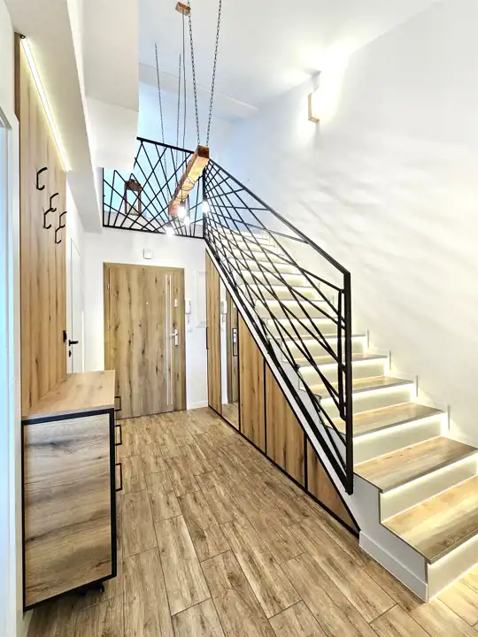 Nowoczesny, dwupoziomowy apartament z przestronnym, imponującym tarasem, balkonem oraz miejscem parkingowym w podziemnej hali garażowej, położony na drugim piętrze, do którego dotrzemy windą, zlokalizowany na osiedlu Lębork Wschód przy ul. Wileńskiej, opodal jeziora Lubowidz (10 min pieszo do plaży), znajdujący się na kameralnym osiedlu w cichym zakątku na stosunkowo nowo wybudowanym (2022r.), prestiżowym osiedlu, z którego można szybko i wygodnie dostać się do centrum - około 5 minut samochodem (do Placu Pokoju i Urzędu Miejskiego). Nieruchomość wykonana jest z materiałów najwyższej jakości, które posiadają niezbędne atesty gwarantujące wysoką energooszczędność i najnowszej technologii. Budynek zaprojektowany został w nietuzinkowy sposób dbając o jego maksymalną funkcjonalność, komfort i wygodę przyszłych mieszkańców, czyniąc go jednocześnie eleganckim z zewnątrz jak i wewnątrz.