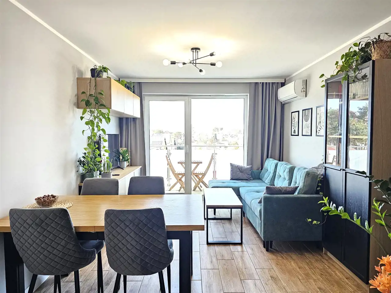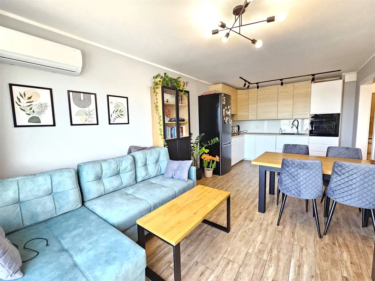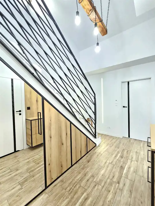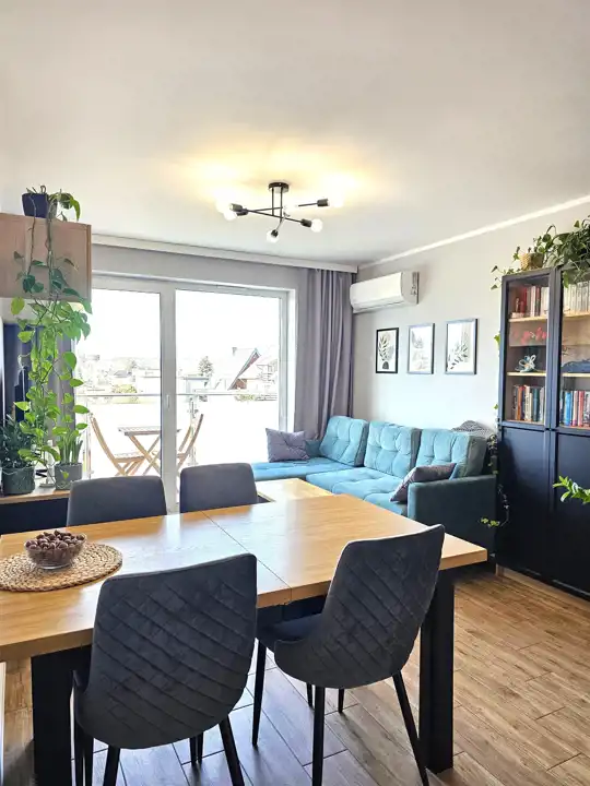 Mieszkanie oferuje 45,59 m² powierzchni użytkowej na dolnym poziomie oraz 15,36 m² poddasza, które stanowi dodatkową przestrzeń użytkową. W lokalu zamontowana jest klimatyzacja, zapewniająca komfort przez cały rok.