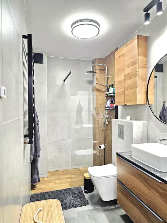 łazienka z WC i prysznicem.
