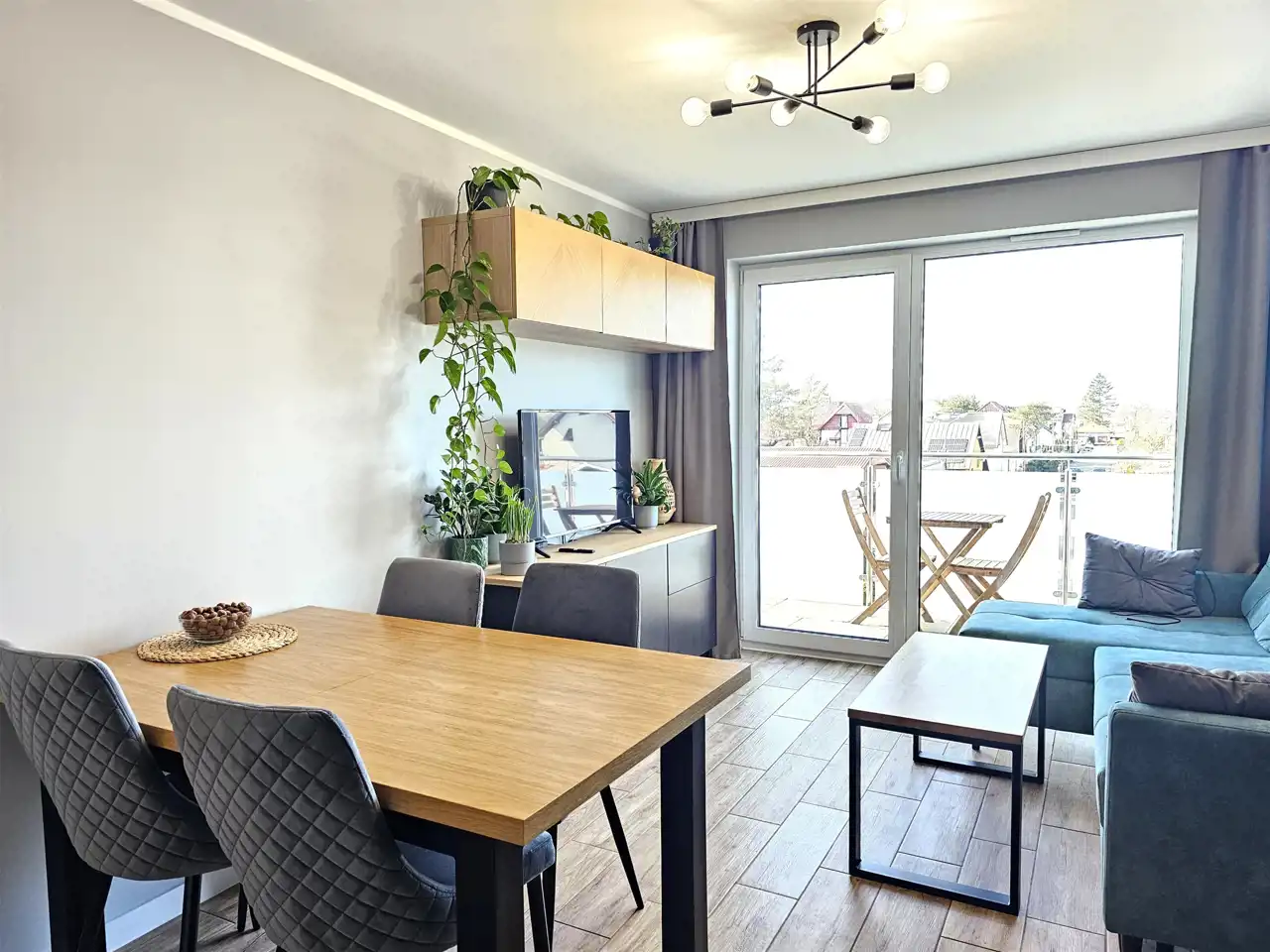 przestronny pokój dzienny z aneksem kuchennym i wyjściem na balkon (3,85 m²),