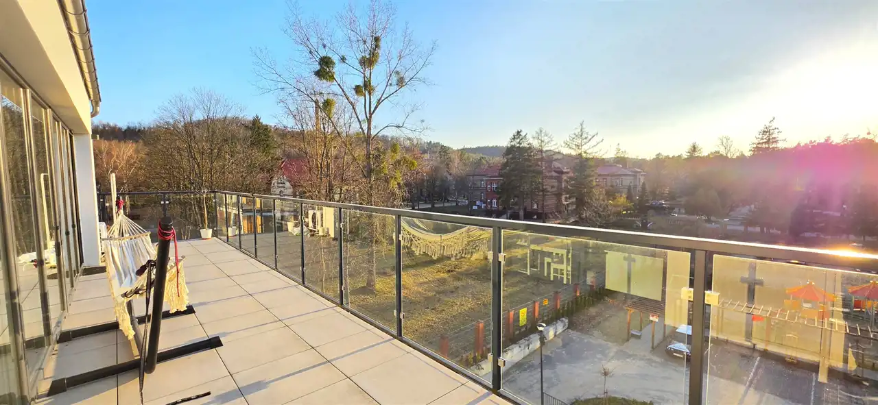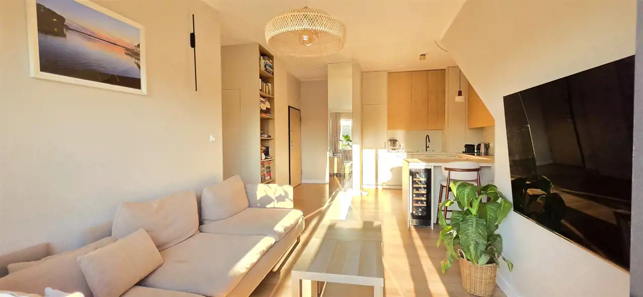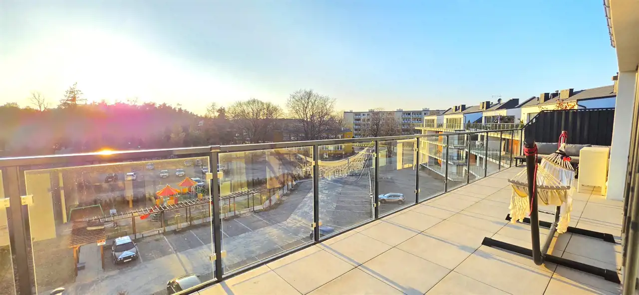 Nowoczesny, designerski apartament z tarasem o powierzchni całkowitej 70m2, użytkowej 62m2 zlokalizowany w Lęborku przy ul. Obrońców Wybrzeża (opodal jednostki wojskowej). Usytuowany na czwartym piętrze, czteropiętrowego apartamentowca, na które wygodnie dostaniemy się windą. Lokal składa się z przedpokoju z funkcjonalnymi zabudowami, słonecznego pokoju dziennego z aneksem kuchennym i wyjściem na w/w taras (30m2), dwóch sypialni oraz łazienki z WC i prysznicem. Mieszkanie zostało zaprojektowane z myślą o maksymalnym wykorzystaniu przestrzeni – zabudowy stolarskie wykonane na wymiar pozwalają optymalnie zagospodarować każdy centymetr powierzchni. Lokal jest w pełni umeblowany i gotowy do wprowadzenia. Wyposażenie również obejmuje lodówkę, płytę grzewczą, piekarnik, zmywarkę, pralkę, klimatyzację i lodówkę na wino. Do lokalu przynależy piwnica (6m2) i miejsce parkingowe nr 23. Nieruchomość znajduje się w nowym budynku wykonanym najnowocześniejszą technologią, gwarantującą wysoką energooszczędność, czyniąc go jednocześnie eleganckim z zewnątrz, jak i wewnątrz oraz dbając o jego maksymalną funkcjonalność, komfort i wygodę. Opodal nieruchomości zlokalizowane są miejsca parkingowe, las, markety wielkopowierzchniowe, restauracja McDonald's, KFC i stacja kolejowa. Reasumując, ze względu na standard, cenę, położenie oraz bliskość ekspresowej drogi krajowej S6, łączącej Trójmiasto - Szczecin (w chwili obecnej dojazd do Gdyni to tylko ok. 35 min, a po oddaniu odcinka Leśnice – Bożepole Wielkie dojazd do Gdyni skróci się do ok. 25 minut), oferta jest godna polecenia.