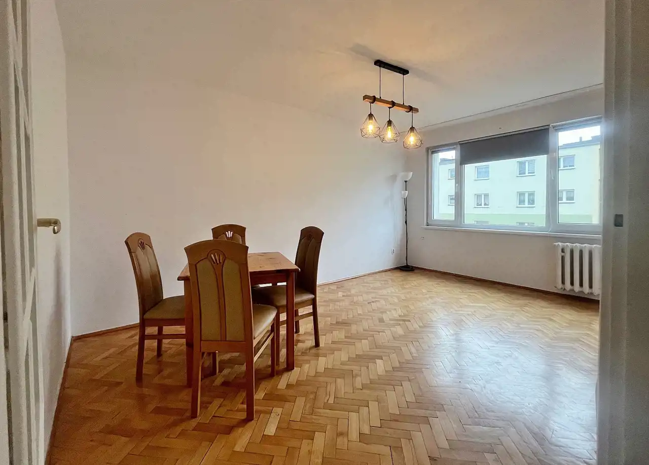 Do wynajęcia od zaraz słoneczne, 2-pokojowe mieszkanie o pow. 37m2 przy. ul. Armii Krajowej w Lęborku. Lokal usytuowany na III piętrze, w sąsiedztwie Starówki oraz malowniczej rzeki Łeba. Składa się z przestronnego salonu z przejściem do kuchni, mniejszego pokoju, łazienki z WC oraz przedpokoju. Do mieszkania przynależy piwnica, a przed blokiem parking dla mieszkańców. Nieruchomość środkowa i bardzo ciepła. Na wyposażeniu podstawowe sprzęty AGD: lodówko-zamrażalka, kuchenka gazowa z piekarnikiem i pralka. Świetna lokalizacja- wszędzie blisko: do sklepów, urzędów, czy na spacer.