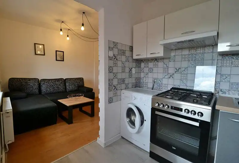 Do wynajęcia od zaraz 2-pokojowe mieszkanie przy ul. Chopina w Lęborku. Lokal usytuowany jest na trzecim piętrze w zadbanym budynku wielorodzinnym. Do dyspozycji 37m2 powierzchni w składzie: przedpokój, pokój dzienny, sypialnia, oddzielna kuchnia oraz łazienka z wc. Dodatkowo do dyspozycji komórka na piętrze oraz piwnica. A przed budynkiem możliwość parkowania. Nieruchomość wyposażona w niezbędne meble oraz sprzęty domowe: m.in.: pralka, kuchenka z piekarnikiem, lodówka czy telewizor. W bliskim sąsiedztwie niezbędna infrastruktura: sklep Żabka, market Netto, rynek czy galeria Promenada.