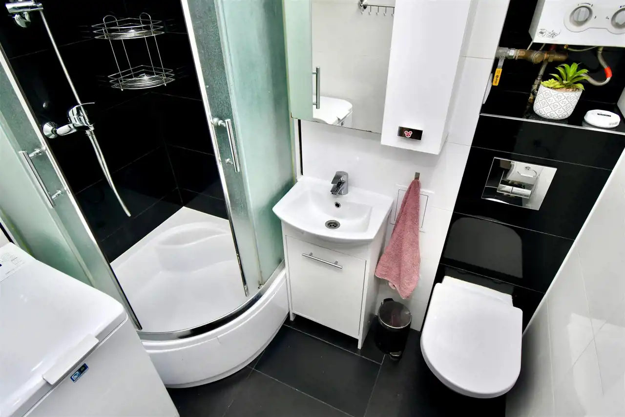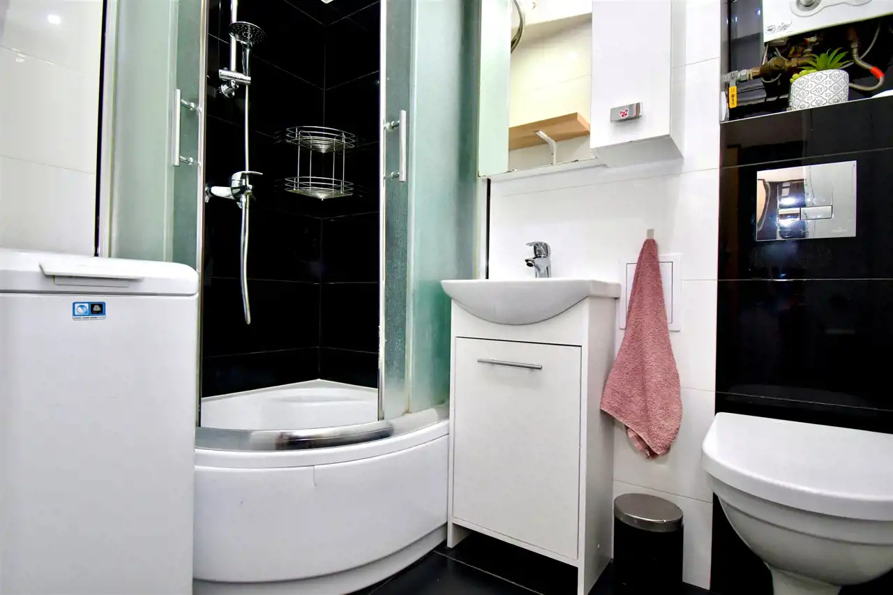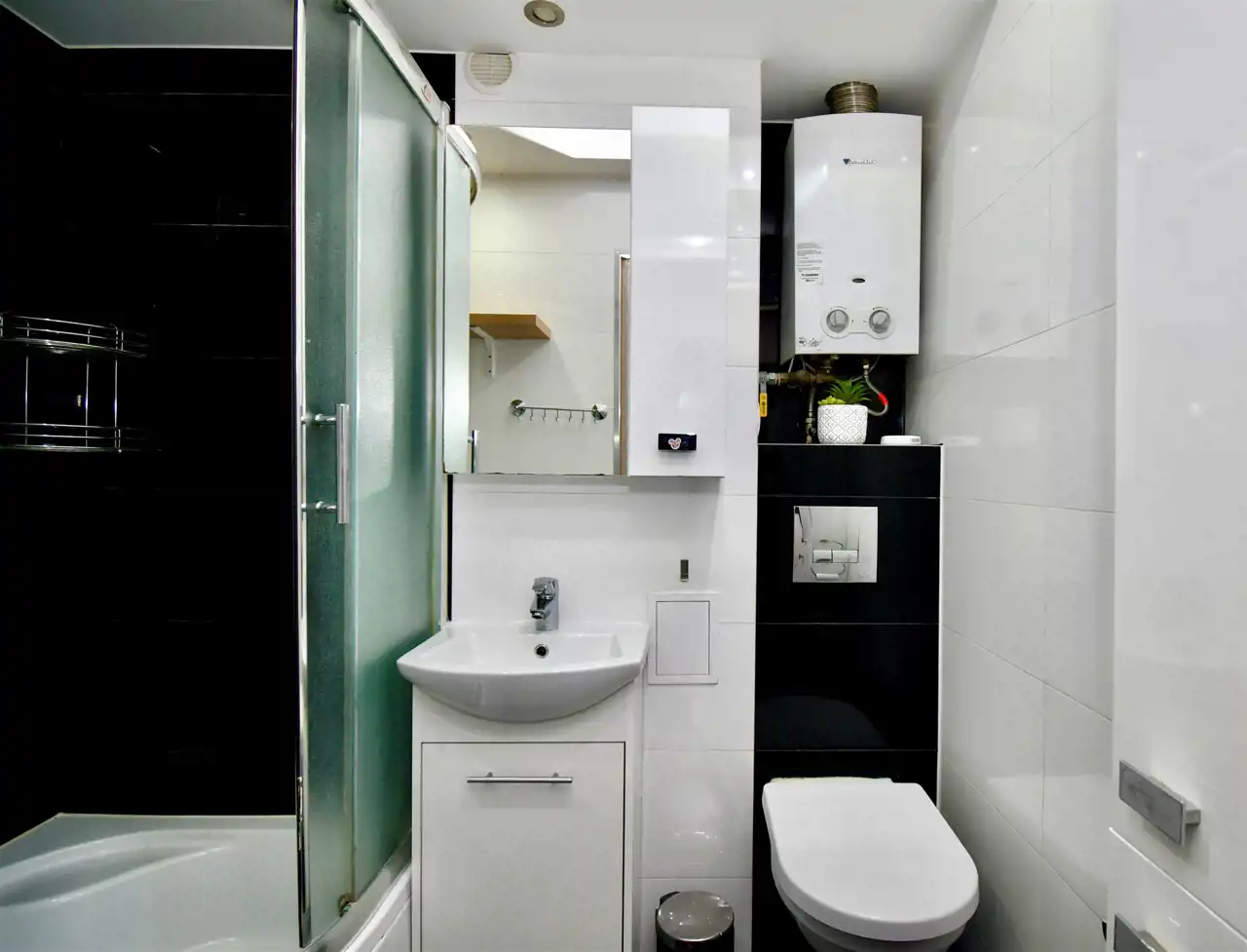 - Media Ogrzewanie: miejskie; Woda: ciepła - piecyk gazowy; Gaz: tak - miejski