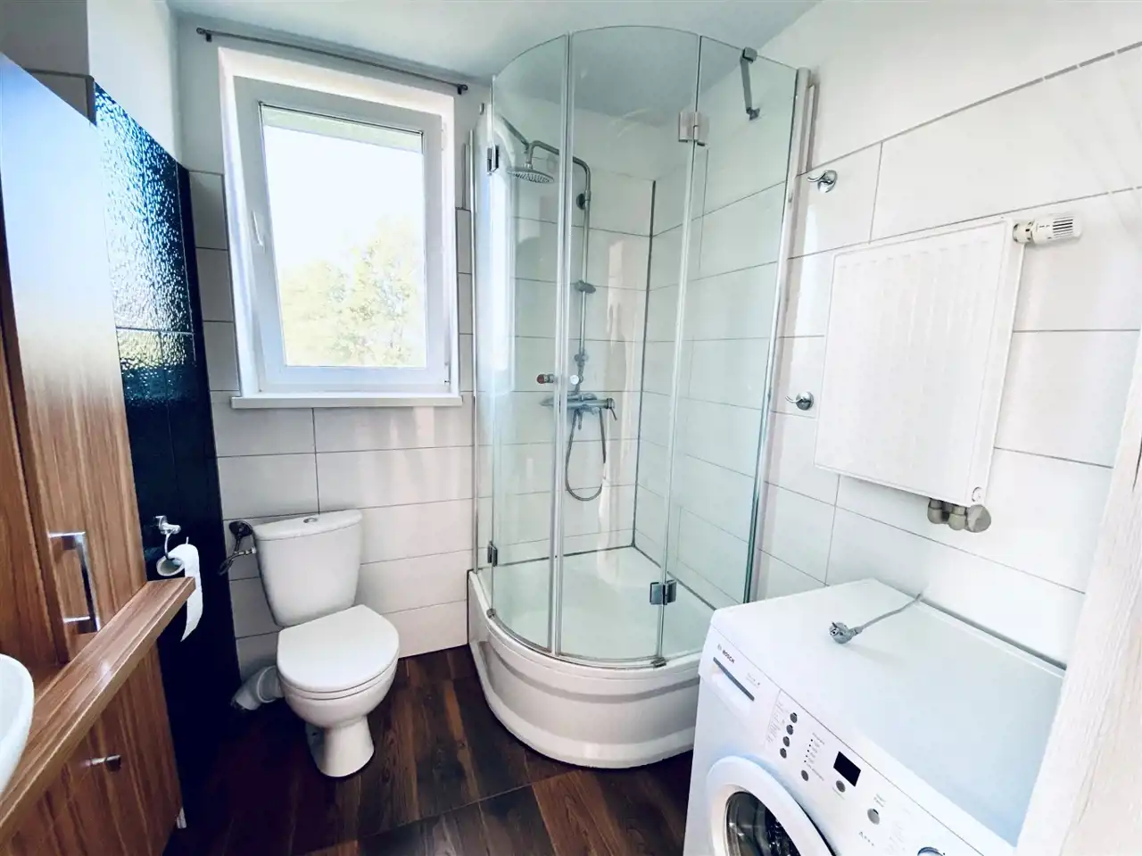 - Media Ogrzewanie: C.O. lokalne; Woda: ciepła - sieć; Gaz: brak