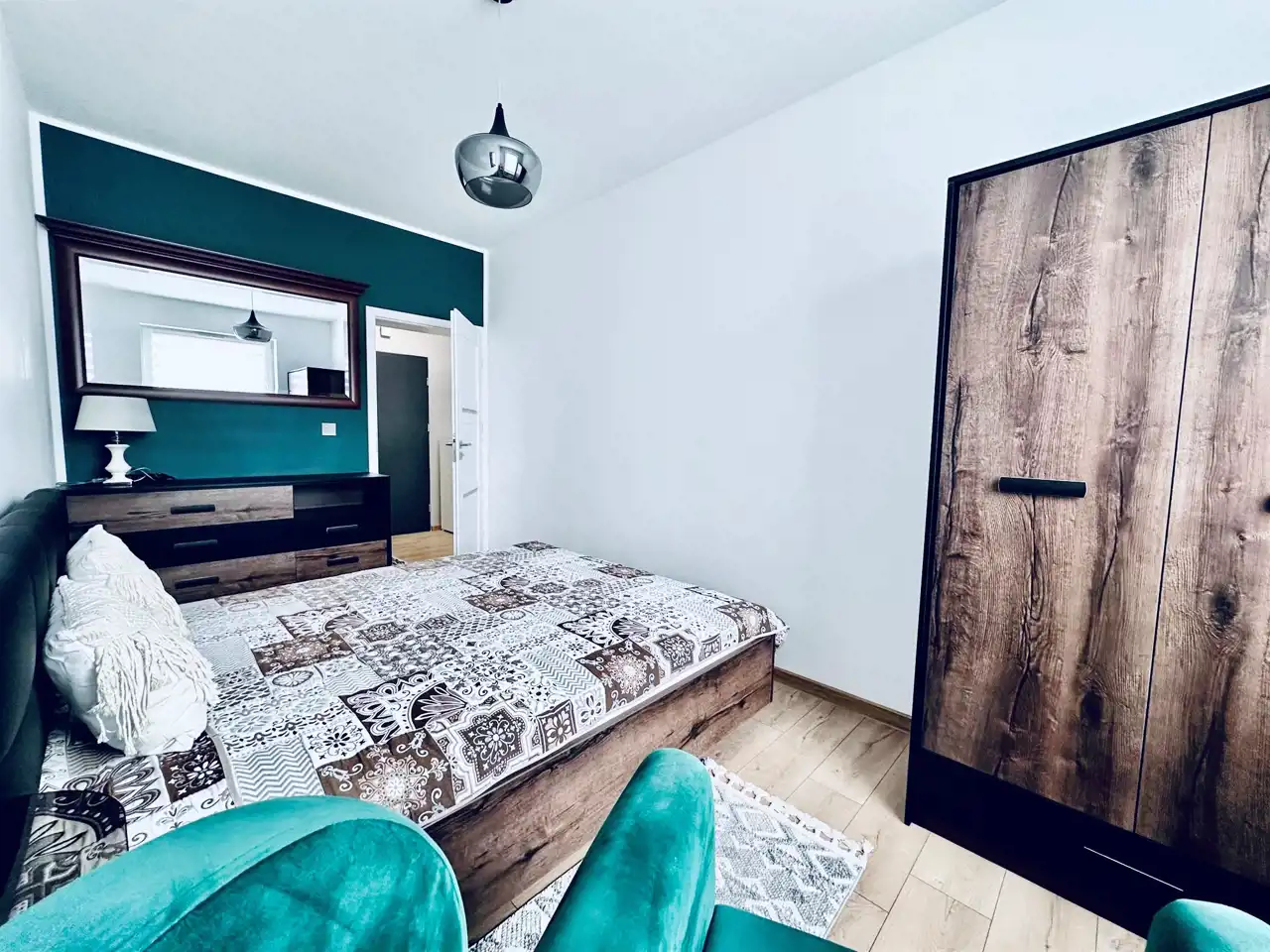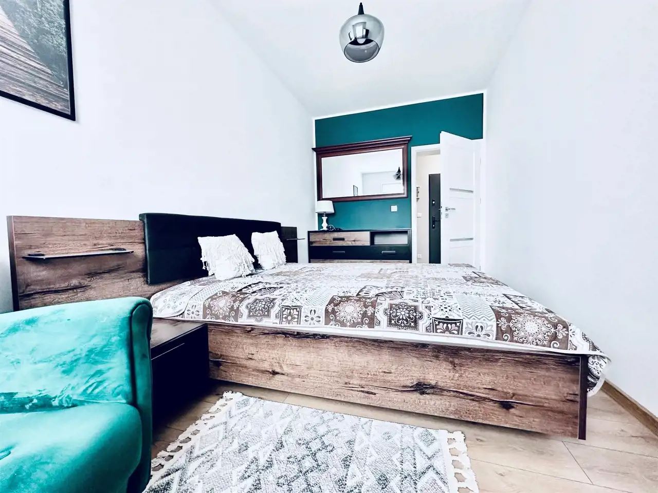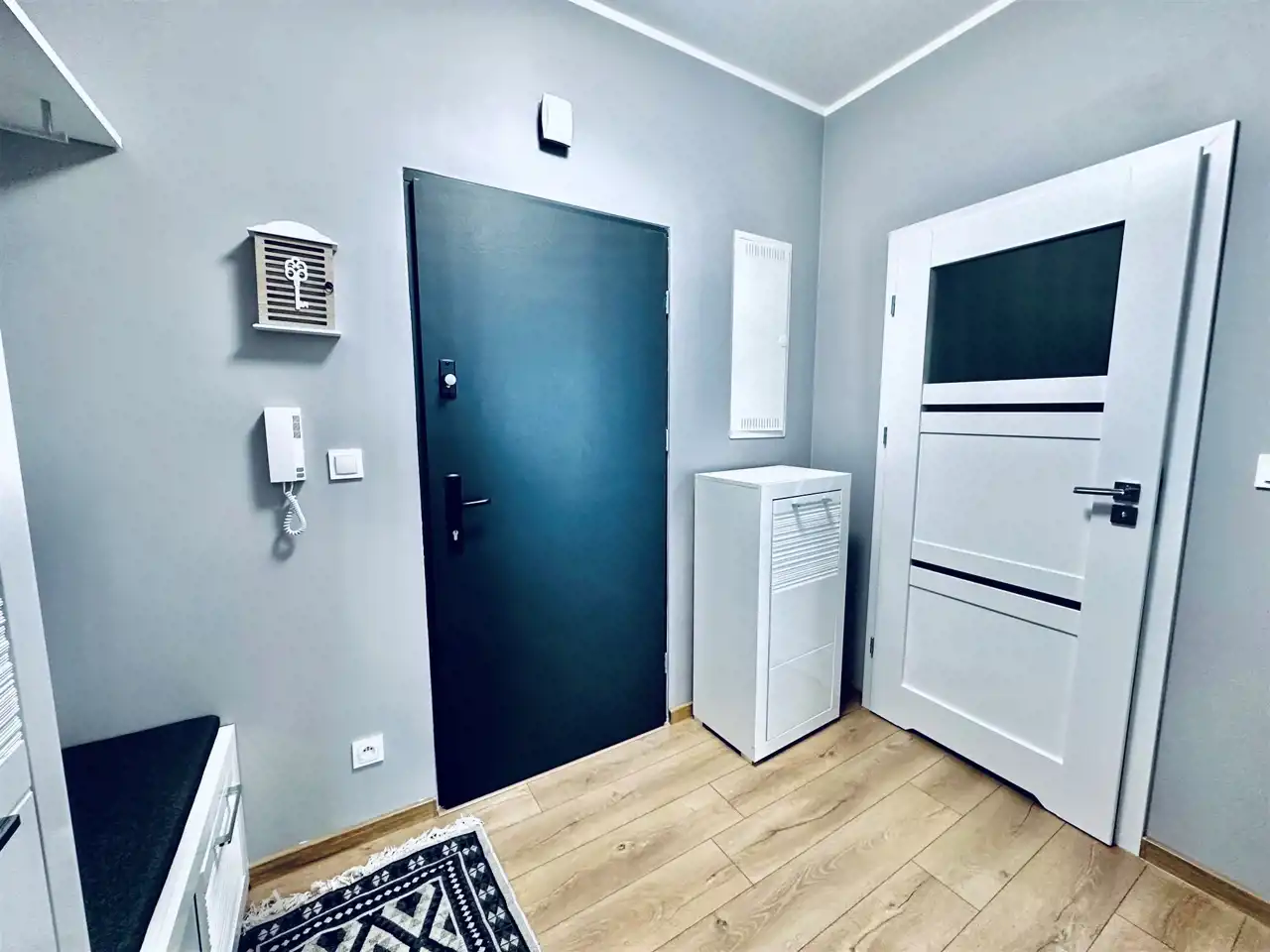 Mieszkanie składa się z salonu z aneksem kuchennym, sypialni, łazienki z WC oraz przedpokoju. Całość została urządzona funkcjonalnie i z dbałością o komfort przyszłego najemcy.