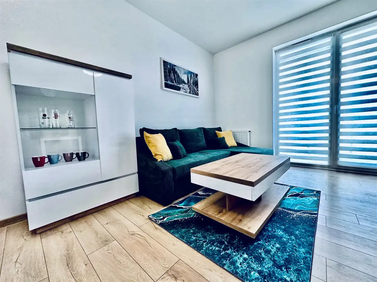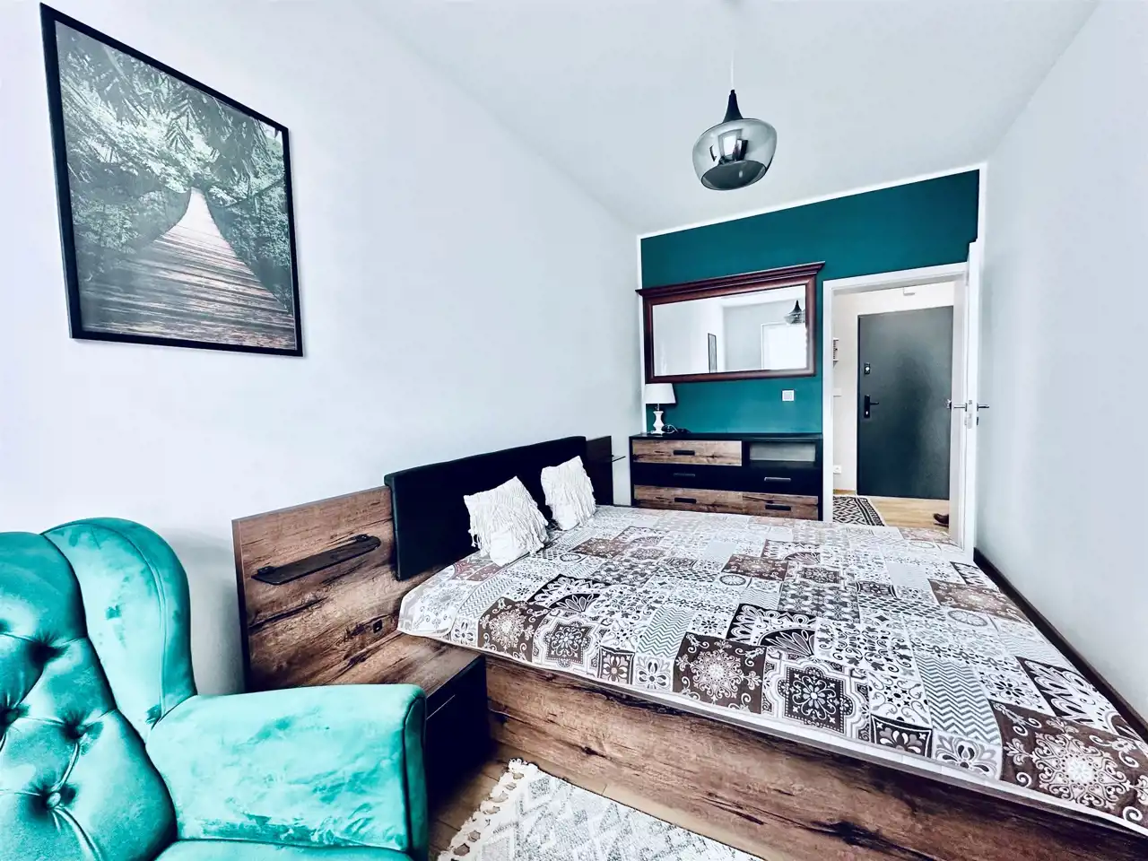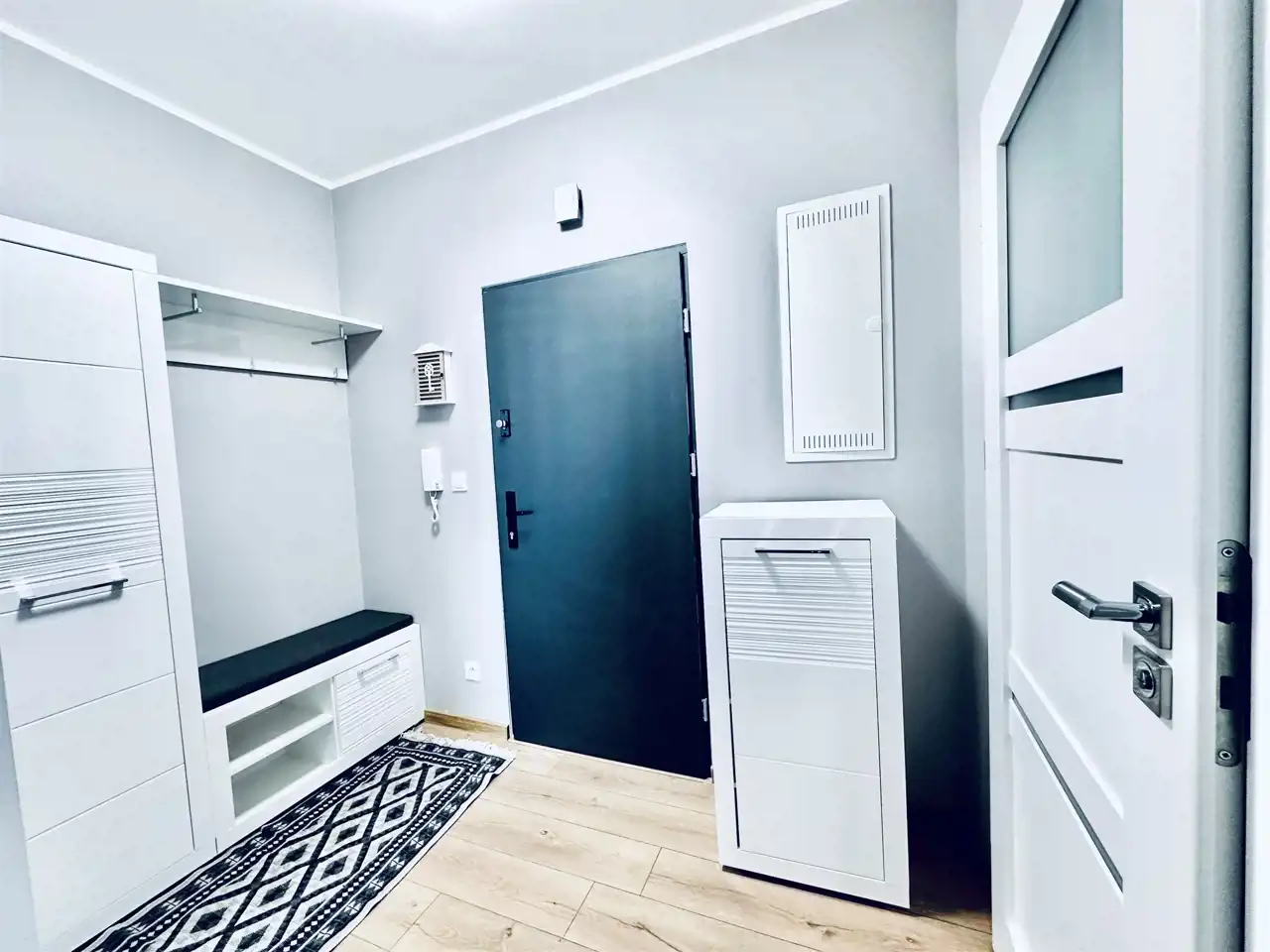 Mieszkanie składa się z salonu z aneksem kuchennym, sypialni, łazienki z WC oraz przedpokoju. Całość została urządzona funkcjonalnie i z dbałością o komfort przyszłego najemcy.