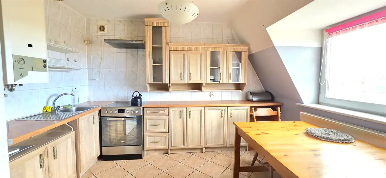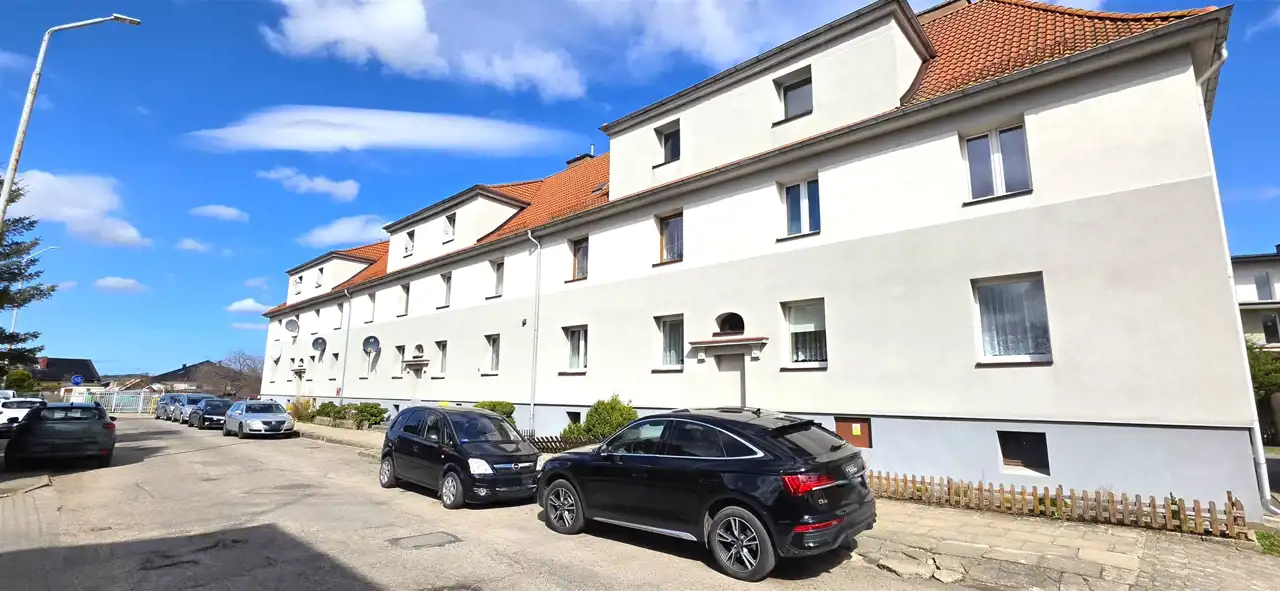 Przytulne mieszkanie o powierzchni użytkowej 56,34 m2, położone w niedalekiej odległości od centrum Lęborka przy ulicy Skarżyńskiego (opodal straży pożarnej). Lokal usytuowany jest na drugim piętrze dwupiętrowej kamienicy, po remoncie elewacji i dociepleniu co sprawia, że jest ciepły, energooszczędny. Lokal składa się z przedpokoju, pokoju dziennego, sypialni, oddzielnej kuchni, schowka oraz łazienki z prysznicem i WC. Do mieszkania przynależy miejsce parkingowe oraz przestrzeń na strychu.