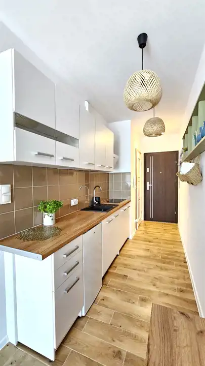 Przytulny, atrakcyjny apartament z dużym balkonem i miejscem parkingowym, położony w Lęborku, przy ulicy Sportowej (opodal Urzędu Skarbowego) o powierzchni 29m2. Lokal usytuowany jest na pierwszym piętrze dwupiętrowego nowo wybudowanego apartamentowca, wykonanego najnowocześniejszą technologią z materiałów wysokiej jakości (co daje bardzo dużą energooszczędność, ciepło). Mieszkanie nie wymaga żadnych nakładów finansowych, można od razu zamieszkać (jest wyposażone). Kwatera składa się z przedpokoju, sypialni, słonecznego pokoju dziennego połączonego z wyposażonym, zabudowanym aneksem kuchennym oraz z wyjściem na w/w balkon, łazienki z WC i prysznicem. Wszystkie instalacje: elektryczne, hydrauliczne są nowe, okna PCV (3 szybowe), podłogi (ogrzewanie podłogowe), drzwi wewnętrze i zewnętrzne. Budynek nie posiada instalacji gazowej, co zwiększa jego bezpieczeństwo. Koło nieruchomości znajdują się miejsca parkingowe oraz cała infrastruktura – budynki użyteczności publicznej, instytucje usługowo-handlowe, szkoły, przedszkole, siłownia, markety wielkopowierzchniowe, restauracja McDonald's i KFC oraz stacja kolejowa. Ze względu na standard, stosunkowo niski czynsz, super położenie, dobrze skomunikowane osiedle (3 linie autobusowe) i w/w atuty oraz bliskość ekspresowej drogi krajowej S6, łączącej Trójmiasto - Szczecin (w chwili obecnej dojazd do Gdyni to tylko około 35 min, a po oddaniu odcinka Leśnice – Bożepole Wielkie dojazd do Gdyni skróci się do ok 25 minut), oferta jest godna polecenia.