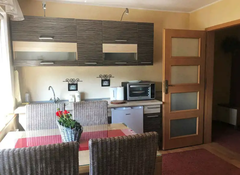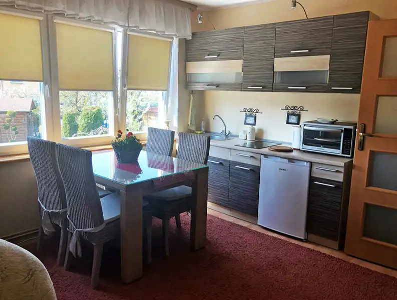 Do wynajęcia od zaraz bez-czynszowe, kompleksowo urządzone piętru domu przy ul. Kaszubskiej w Lęborku. Mieszkanie w pełni umeblowane i wyposażone w niezbędne sprzęty domowe (m.in. TV, lodówka, płyta indukcyjna, kuchenka mikrofalowa z piekarnikiem, pralka, czajnik elektryczny). Do dyspozycji ok. 45m2 w składzie: aneks kuchenny z salonem, sypialnia oraz łazienka z WC wyposażona w kabinę prysznicową. Całość prezentuje się dobrze: przytulnie, czysto i słonecznie. Na tyle tyłach posesji dodatkowo możliwość parkowania.