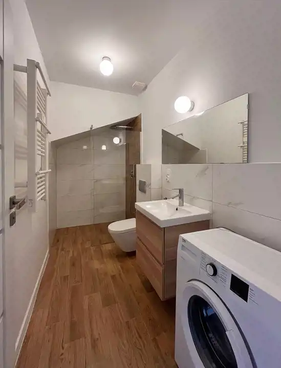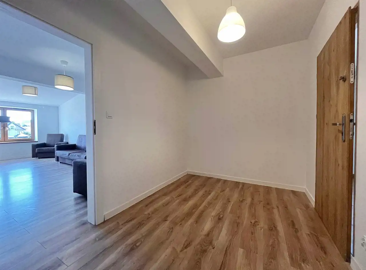 Prezentujemy do wynajęcia od zaraz bez-czynszowe, 2 pokojowe mieszkanie zlokalizowane w dzielnicy domków jednorodzinnych przy ul. Cisowej w Lęborku. Mieszkanie usytuowane jest na I piętrze w budynku zaledwie trzy-lokalowym z przynależnym miejscem parkingowym. Do dyspozycji ponad 60m2 przestronnej powierzchni w składzie: przedpokój, 2 pokoje, oddzielna kuchnia oraz łazienka z wc. Na wyposażeniu niezbędne sprzęty domowe: lodówka, pralka, zmywarka, piekarnik czy płyta indukcyjna oraz podstawowe meble (stan, jak na zdjęciach). Nieruchomość po remoncie. Dla komfortu użytkowników zamontowano ponadto nowoczesne, podłogowe ogrzewanie na podczerwień. Przed budynkiem przynależne miejsce parkingowe, a dla bezpieczeństwa monitoring. Koszt najmu to: 1800zł + prąd i woda. W cenie Internet oraz śmieci. Kaucja 3000zł.