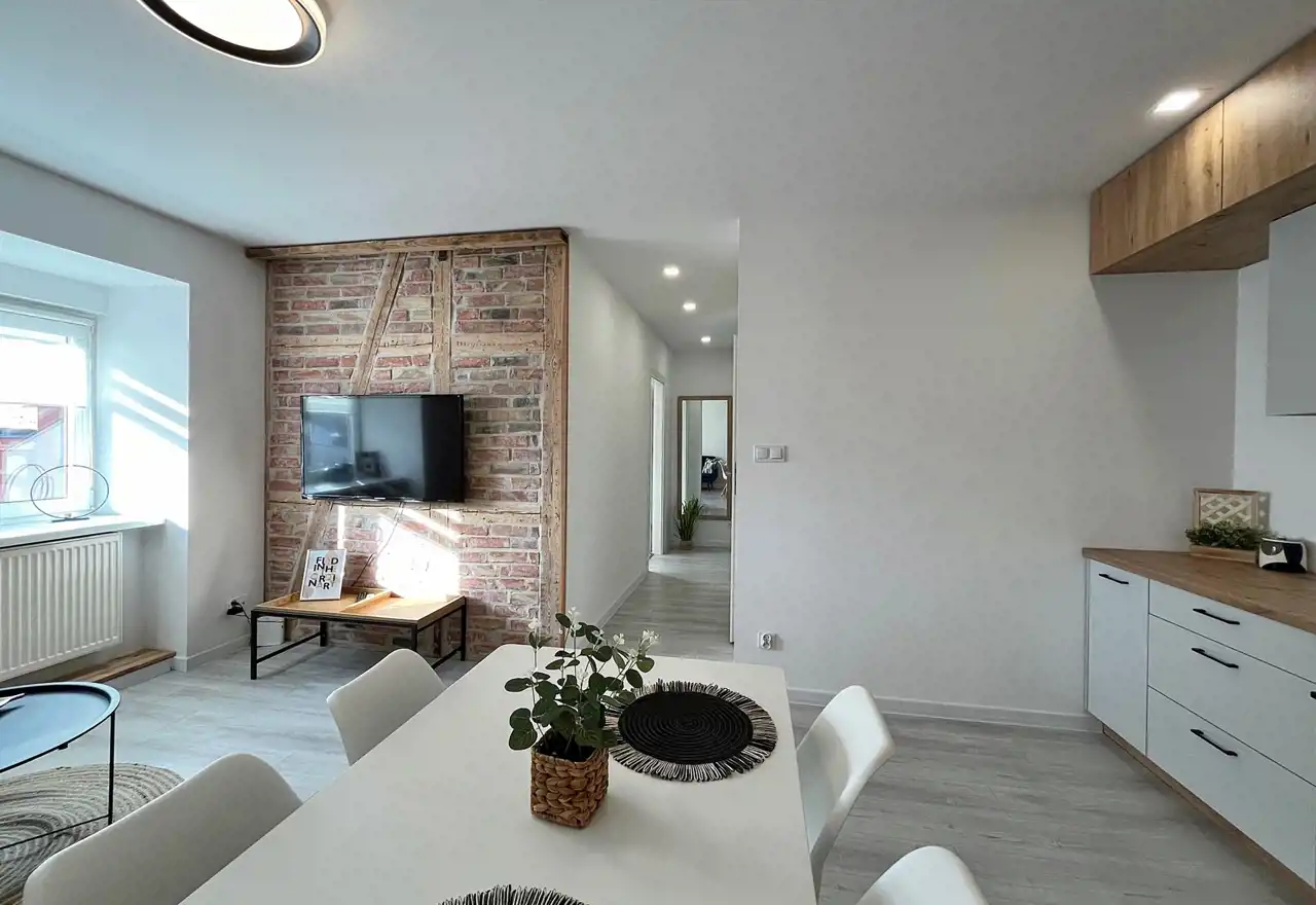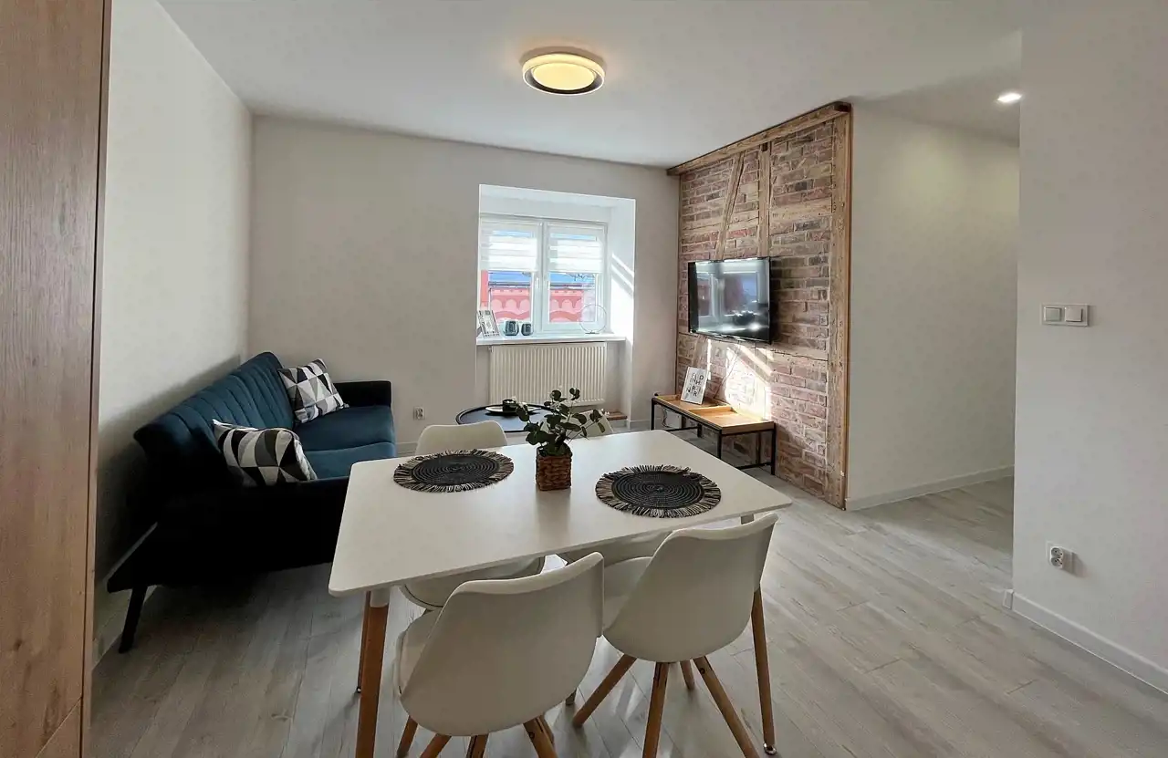 Do wynajęcia od kwietnia (od tej daty możliwość obejrzenia) 2-pokojowe, klimatyczne mieszkanie przy ul. Aleja Wolności w Lęborku. Lokal usytuowany w samym centrum miasta na trzecim/ostatnim piętrze, zadbanej kamienicy. Do dyspozycji prawie 43m2 bardzo funkcjonalnie i nowocześnie zagospodarowanej powierzchni. W składzie lokalu: aneks kuchenny z salonem, sypialnia, przedpokój oraz łazienka z wc. Przynależna piwnica. Mieszkanie wyposażone we wszystkie domowe sprzęty (m.in.: lodówka, pralka, zmywarka, telewizor czy piekarnik) oraz niezbędne umeblowanie. Całość, jak zdjęciach: słonecznie i przytulnie.