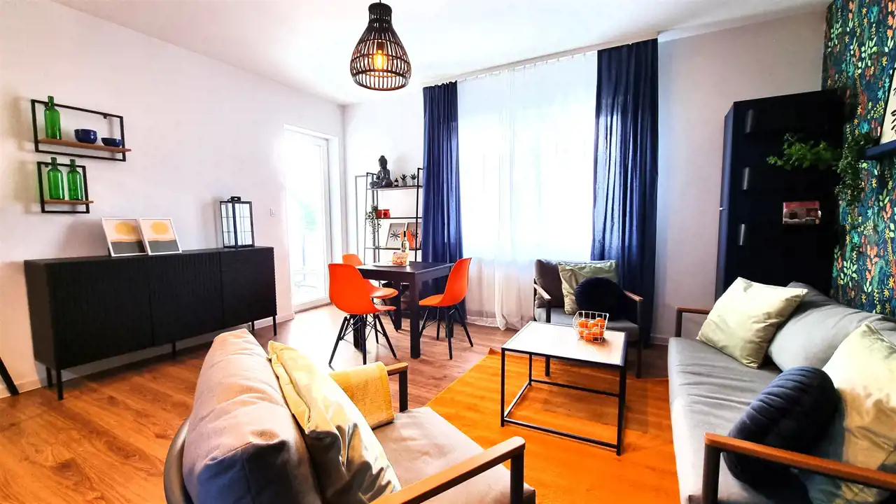 Komfortowy, nowoczesny, apartament z balkonem i miejscem parkingowym, położony w Lęborku, przy ulicy Kossaka (opodal marketu Polo) o powierzchni 47m2. Lokal usytuowany jest na pierwszym piętrze dwupiętrowego nowo wybudowanego budynku mieszkalnego, wykonanego najnowocześniejszą technologią, z materiałów wysokiej jakości (co daje bardzo dużą energooszczędność, ciepło). Mieszkanie nie wymaga żadnych nakładów finansowych, można od razu zamieszkać (jest wyposażone). Wszystkie instalacje: elektryczne, hydrauliczne są nowe, okna PCV (3 szybowe), podłogi (gres), drzwi wewnętrze i zewnętrzne. Kwatera składa się z przedpokoju, sypialni, słonecznego pokoju dziennego połączonego z wyposażonym, zabudowanym aneksem kuchennym, łazienki z wc i prysznicem oraz pokoju. Koło nieruchomości znajduje się miejsce parkingowe widoczne z okna. Ze względu na położenie oraz wysoki standard i możliwość dodatkowego wyposażenia oferta jest godna polecenia.