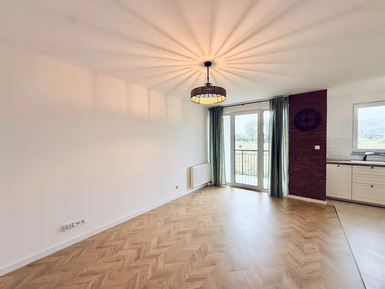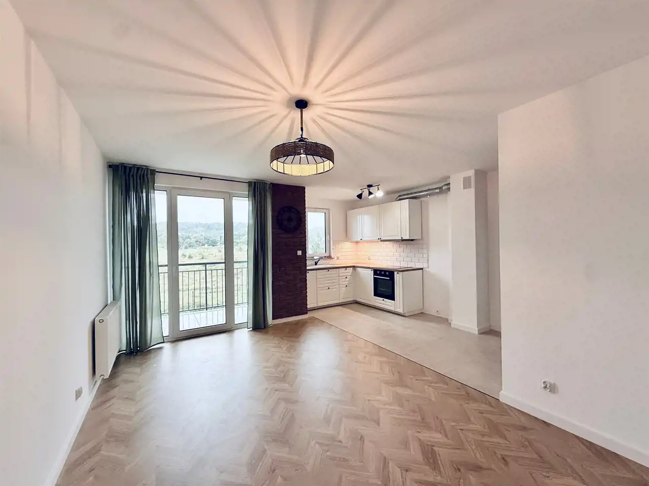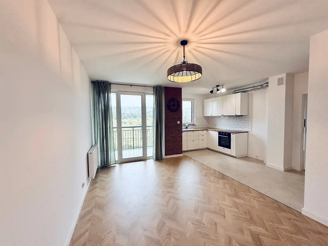 jasny pokój dzienny z aneksem kuchennym, z wyjściem na przestronny balkon o południowej ekspozycji,