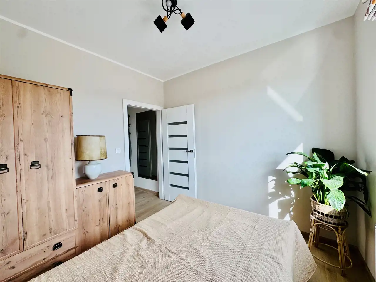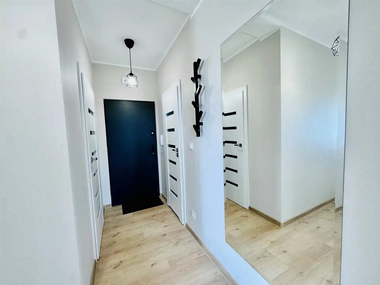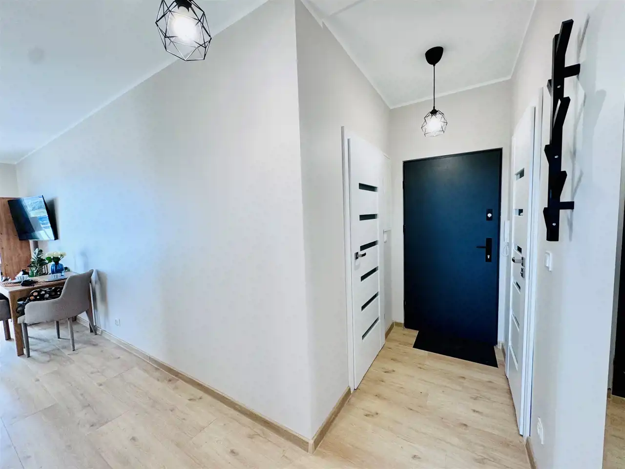 Mieszkanie jest w pełni wyposażone i gotowe do zamieszkania od zaraz. Składa się z przestronnego salonu, z którego można wyjść na duży balkon. To idealne miejsce do relaksu na świeżym powietrzu, gdzie można cieszyć się poranną kawą czy wieczornym odpoczynkiem. Komfortowa sypialnia gwarantuje spokojny wypoczynek, a nowoczesna łazienka z WC urządzona jest z dbałością o funkcjonalność i estetykę. Dodatkowa garderoba zapewnia przestrzeń do przechowywania, dzięki czemu mieszkanie jest jeszcze bardziej praktyczne.