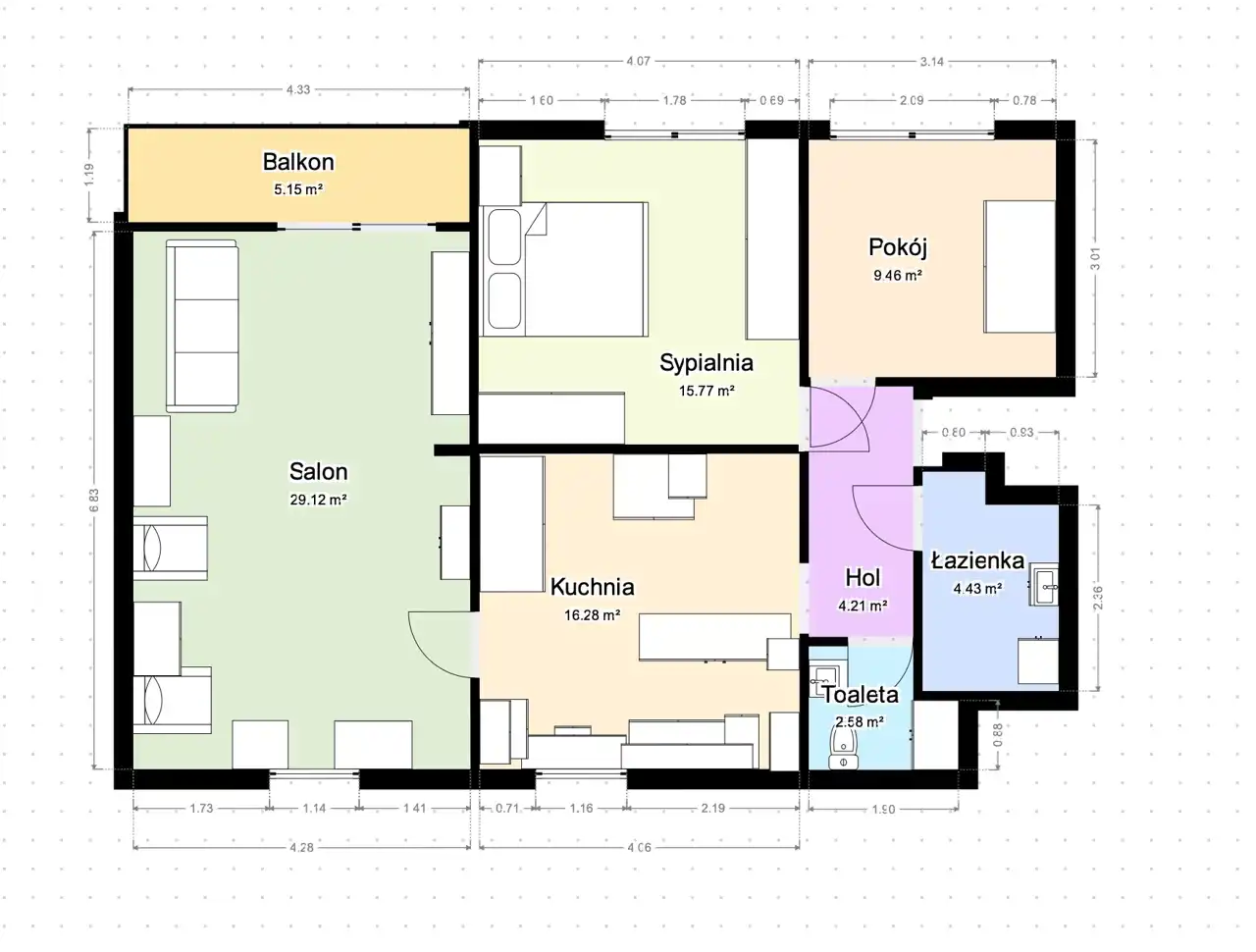 - obszerny salon z wyjściem na balkon o ekspozycji południowej,