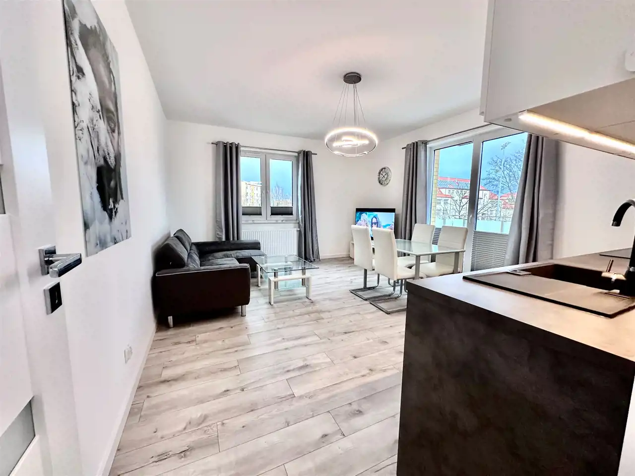 Oferujemy do WYNAJĘCIA ładne, przestronne oraz jasne mieszkanie wraz z miejscem postojowym w Lęborku przy ul. Wojska Polskiego o metrażu 43,66 m2 . Lokal usytuowany jest na drugim piętrze czteropiętrowego budynku wielorodzinnego wybudowanego w 2023 r. Nieruchomość jest w pełni wyposażona! Składa się z przedpokoju, salonu z aneksem kuchennym sypialni oraz łazienki z WC. Niedaleko nieruchomości znajduje się cała infrastruktura- budynki użyteczności publicznej, sklepy, szkoła, przedszkole oraz kościół. Ze względu na położenie oraz standard wykończenia oferta jest godna polecenia.