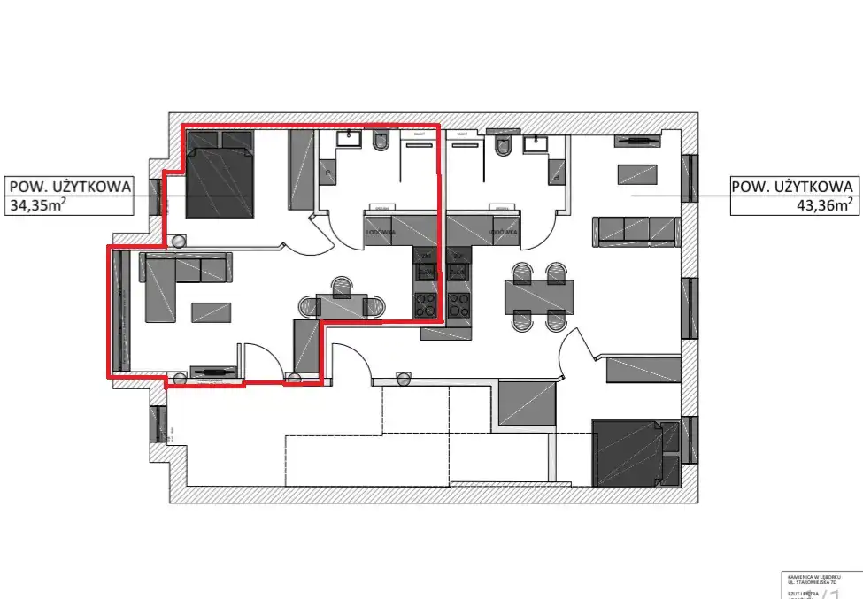 - Charakterystyka mieszkania 34.35 m2, 2 pokoje