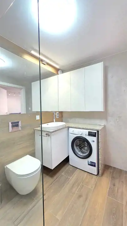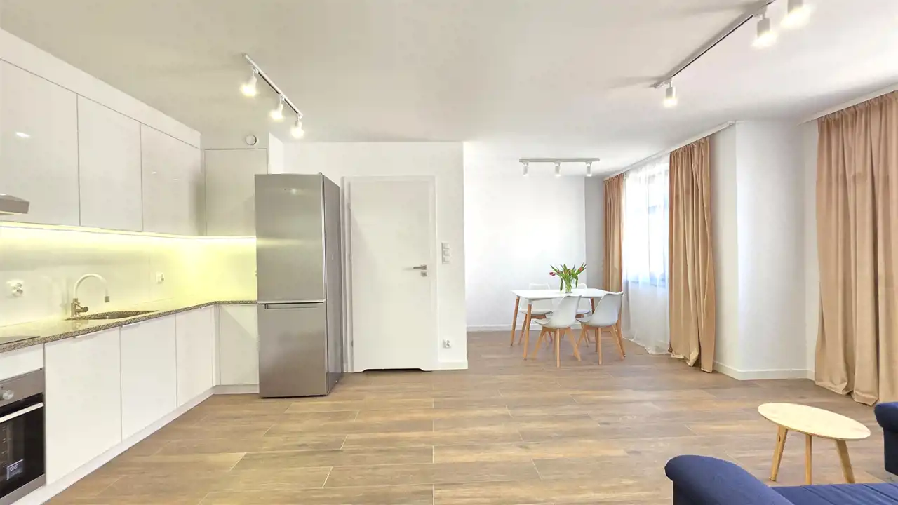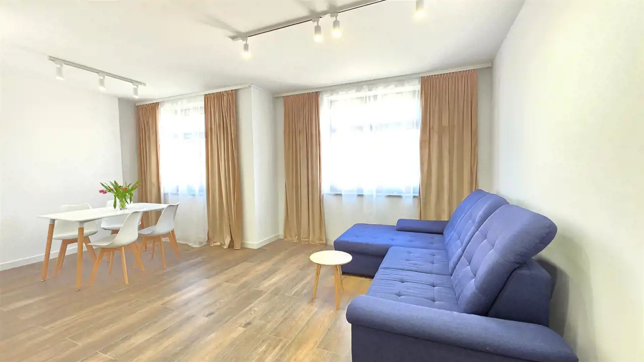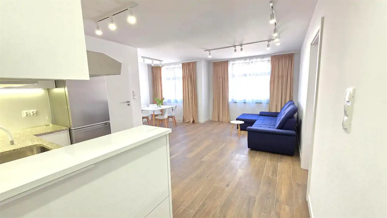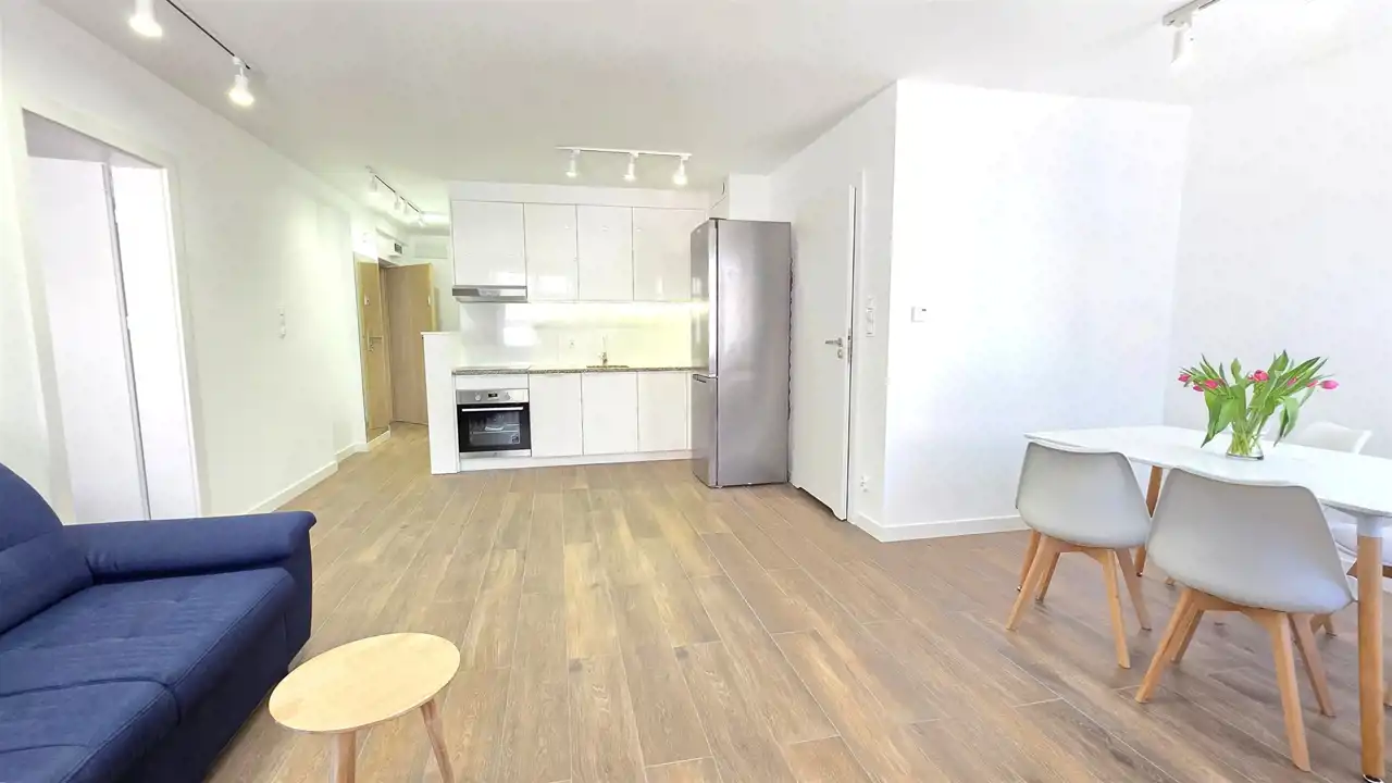 Nowoczesny, bezczynszowy apartament o powierzchni użytkowej 45,76m2, zlokalizowany w Lęborku przy ul. Staromiejskiej (na deptaku). Lokal położony jest na drugim piętrze, trzypiętrowej, stosunkowo nowej kamienicy. Mieszkanie jest w pełni wyposażone, można od razu zamieszkać. Składa się z przedpokoju, widnego pokoju dziennego połączonego z aneksem kuchennym, sypialni oraz łazienki z WC i prysznicem. Do mieszkania przynależy komórka lokatorska. Wszystkie rzeczy widniejące na zdjęciach pozostają w lokalu, w pełni wyposażone wraz z meblami. Ze względu na lokalizację (ścisłe centrum) oraz wysoki standard oferta jest godna polecenia.