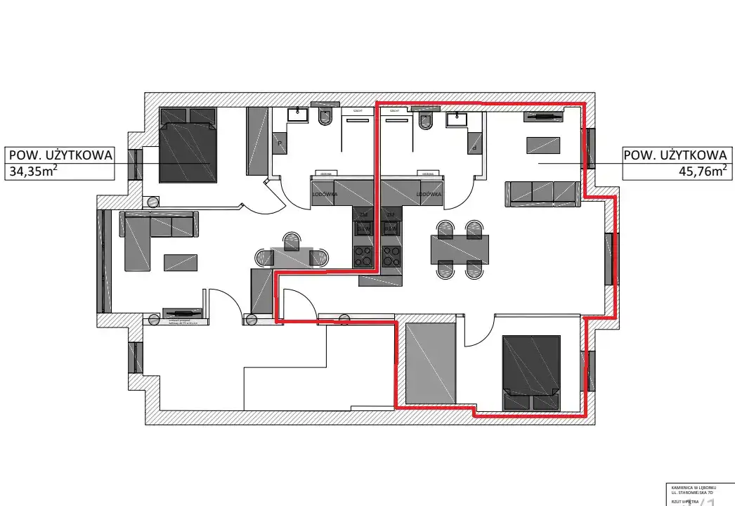 - Charakterystyka mieszkania 45.76 m2, 2 pokoje