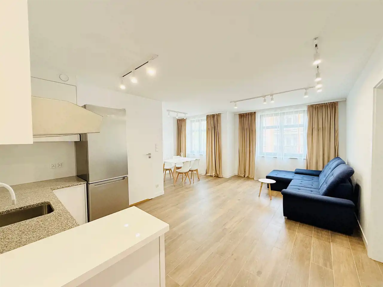 przestronny salon z aneksem kuchennym