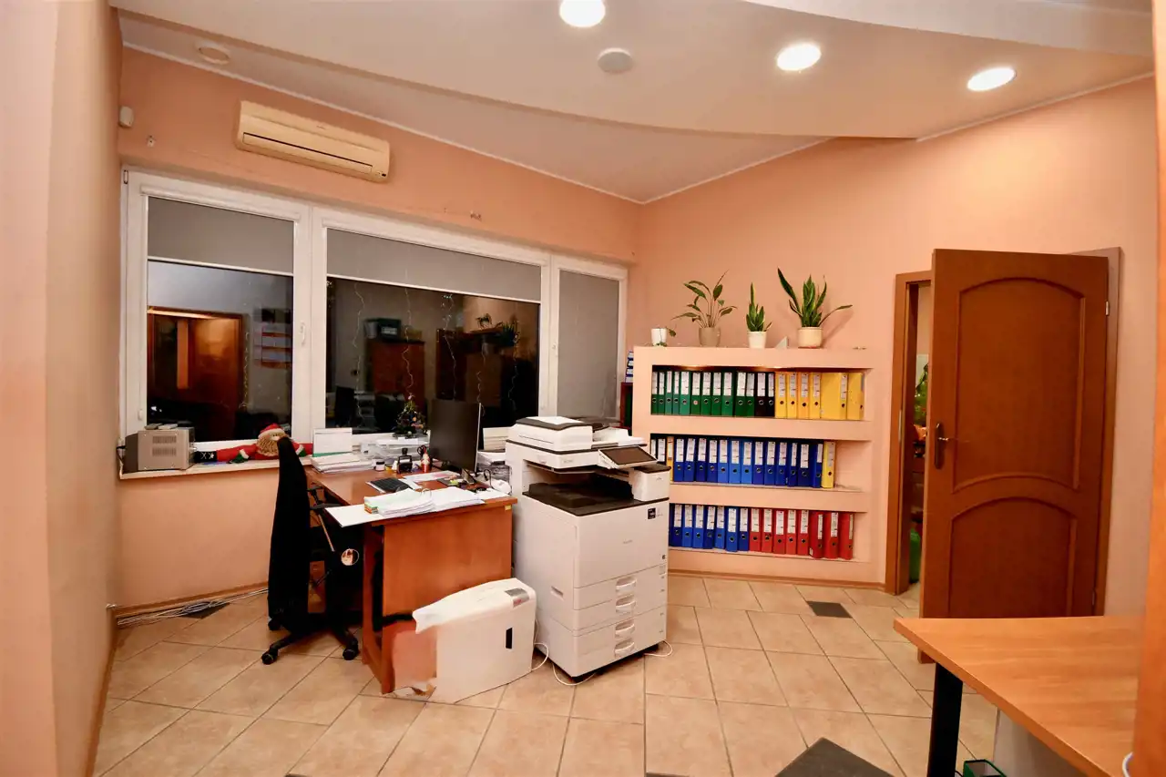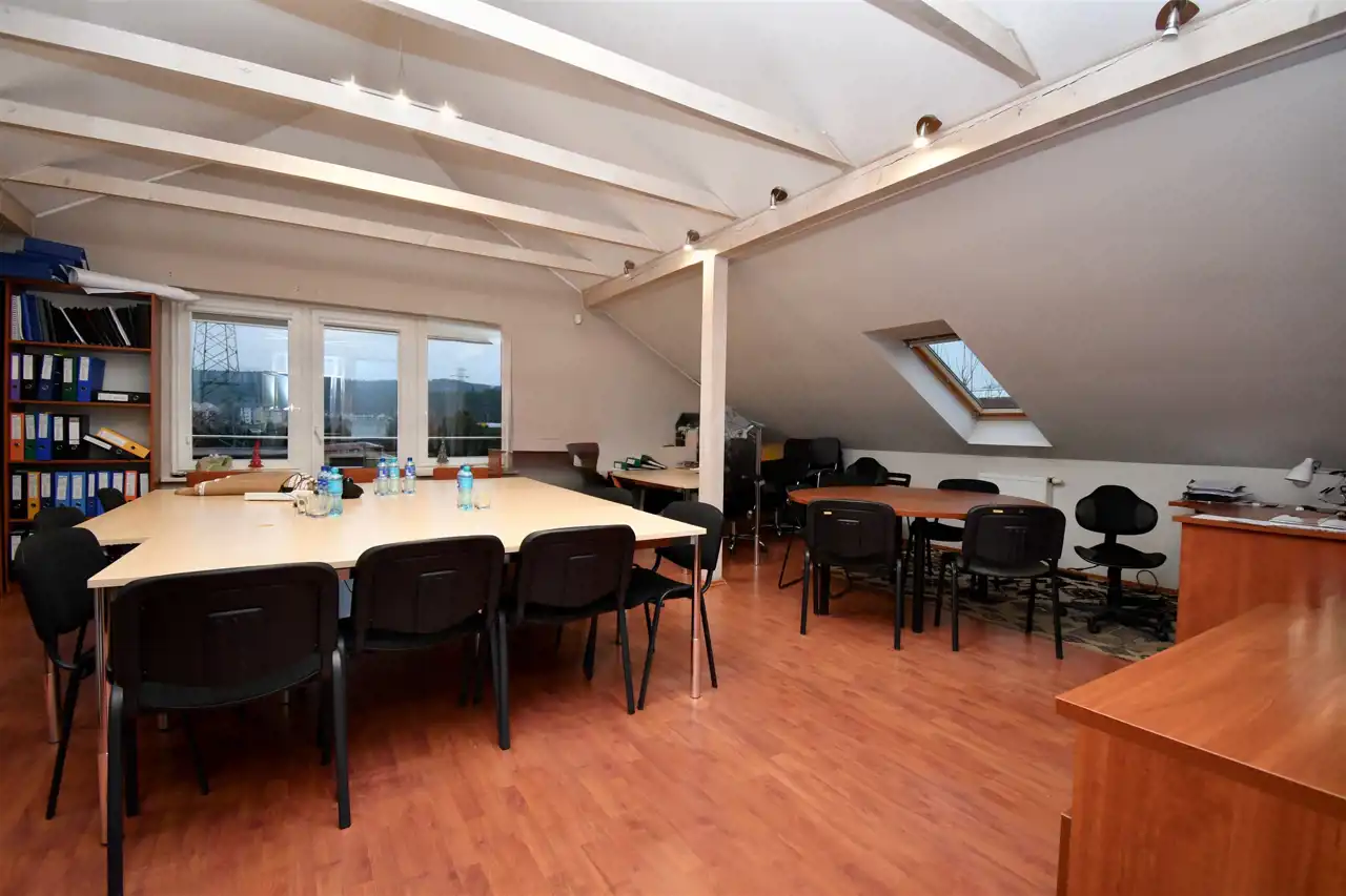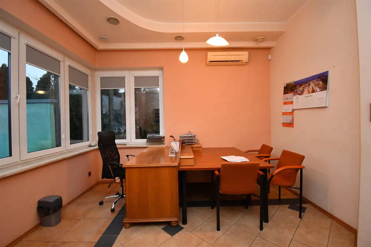Oferujemy do sprzedaży funkcjonujący obiekt komercyjny, położony w Lęborku przy ul. Słupskiej. W skład nieruchomości wchodzi działka gruntu o powierzchni 5628 m2 na której w 2003 roku został wybudowany dwukondygnacyjny, wolnostojący budynek administracyjno-biurowy z zapleczem socjalnym i częścią magazynową o powierzchni użytkowej 208,10 m2. Przedmiotowa działka o kształcie zbliżonym do prostokąta została ogrodzona od strony południowej i zachodniej murowanym ogrodzeniem pełnym a od pozostałych stron siatką stalową na stalowych słupkach. Wjazd na posesję od ulicy Słupskiej jest zamykany bramą przesuwną. Podjazd i około 3500 m2 działki zostało utwardzone i wyłożone kostką brukową. Część ta stanowi obecnie plac manewrowy i miejsca postojowe dla samochodów ciężarowych. W obrębie działki wybudowano również budynek garażowo-techniczny o powierzchni użytkowej 56,20m2 i usytuowano wolnostojącą konstrukcję paneli fotowoltaicznych w znaczny sposób redukującą koszty energii elektrycznej zużywanej w obiekcie.