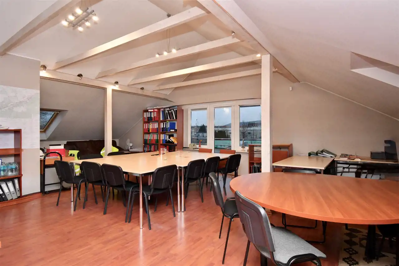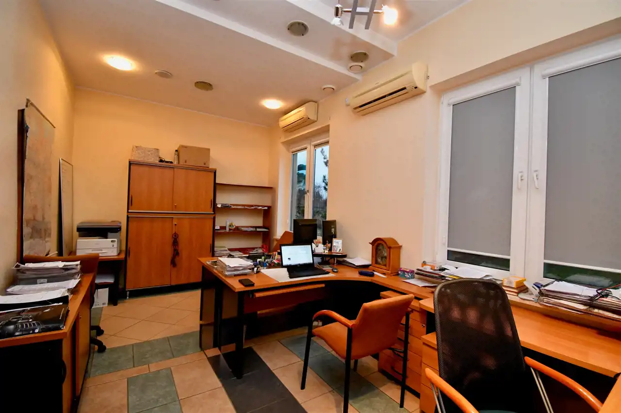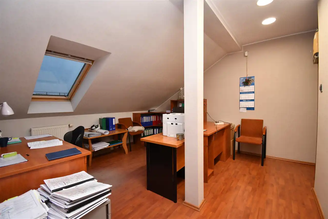 Oferujemy do sprzedaży funkcjonujący obiekt komercyjny, położony w Lęborku przy ul. Słupskiej. W skład nieruchomości wchodzi działka gruntu o powierzchni 5628 m2 na której w 2003 roku został wybudowany dwukondygnacyjny, wolnostojący budynek administracyjno-biurowy z zapleczem socjalnym i częścią magazynową o powierzchni użytkowej 208,10 m2. Przedmiotowa działka o kształcie zbliżonym do prostokąta została ogrodzona od strony południowej i zachodniej murowanym ogrodzeniem pełnym a od pozostałych stron siatką stalową na stalowych słupkach. Wjazd na posesję od ulicy Słupskiej jest zamykany bramą przesuwną. Podjazd i około 3500 m2 działki zostało utwardzone i wyłożone kostką brukową. Część ta stanowi obecnie plac manewrowy i miejsca postojowe dla samochodów ciężarowych. W obrębie działki wybudowano również budynek garażowo-techniczny o powierzchni użytkowej 56,20m2 i usytuowano wolnostojącą konstrukcję paneli fotowoltaicznych w znaczny sposób redukującą koszty energii elektrycznej zużywanej w obiekcie.