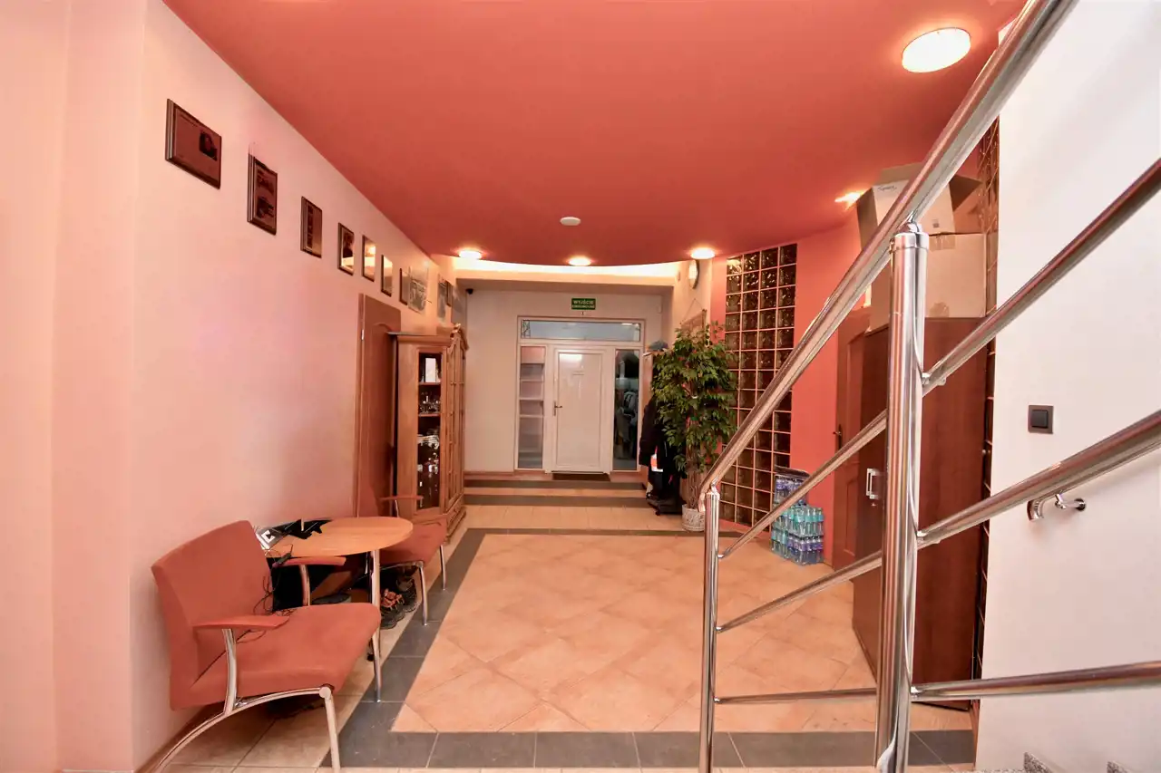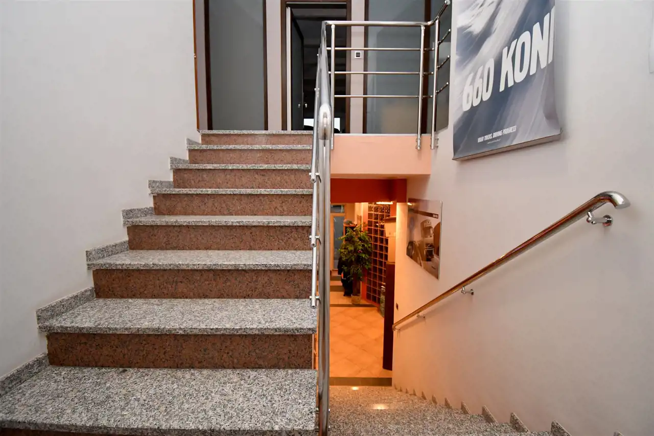 Budynek główny stanowi dwie kondygnacje wybudowane w technologii murowanej, zadaszony dachem pokrytym blachodachówką. Stolarka okienna PCV, drzwi zewnętrzne z profili aluminiowych. Ogrzewanie i ciepła woda użytkowa zasilana z miejskiej sieci ciepłowniczej. W budynku zainstalowano klimatyzację i system antywłamaniowy z monitoringiem wizyjnym i instalacją alarmową.