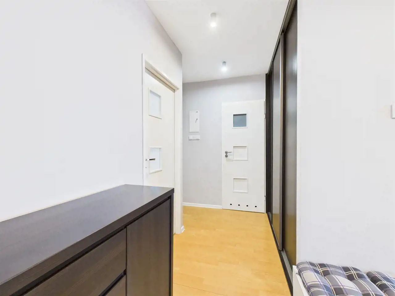 - szeroki przedpokój z dużą szafą w zabudowie,