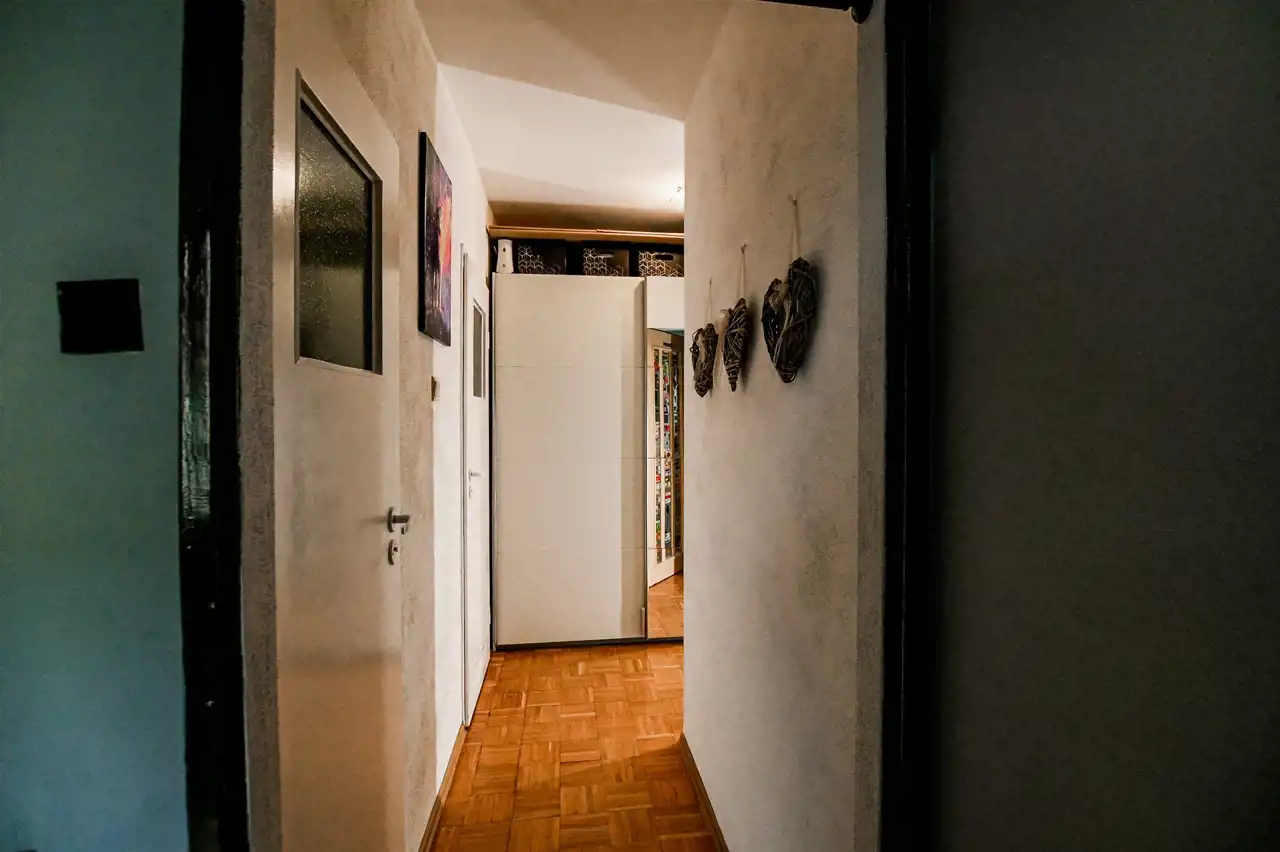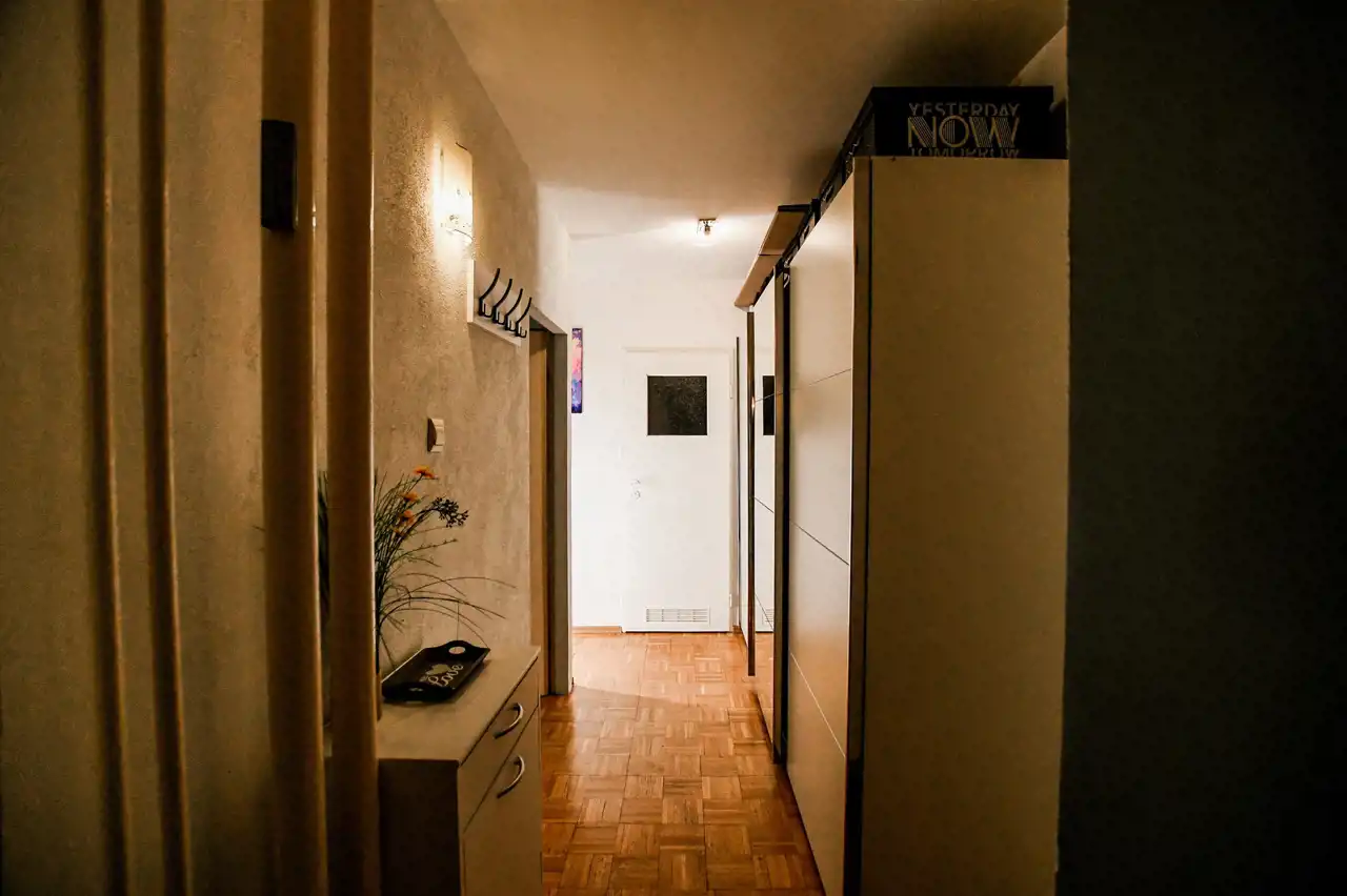 przedpokoju z pojemną szafą w zabudowie.