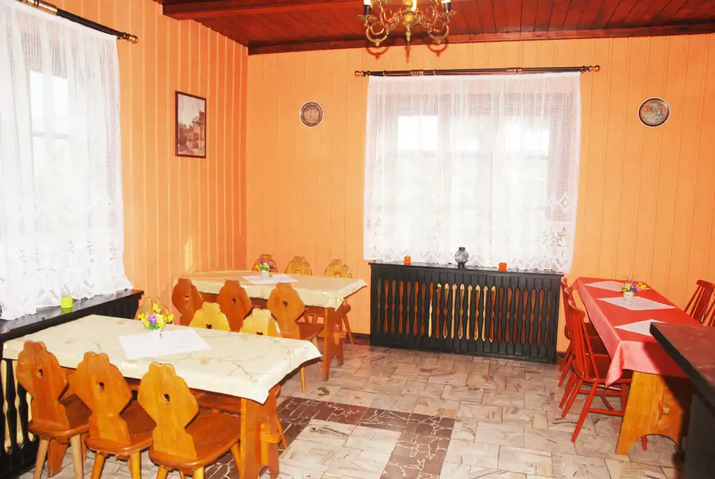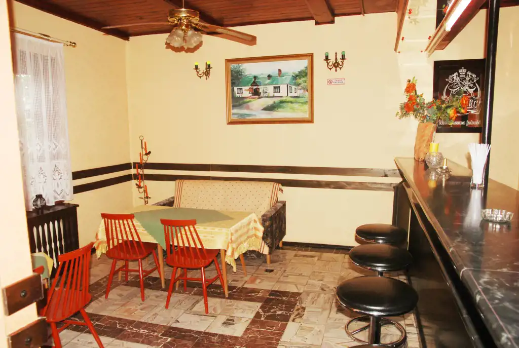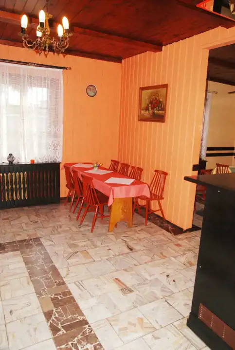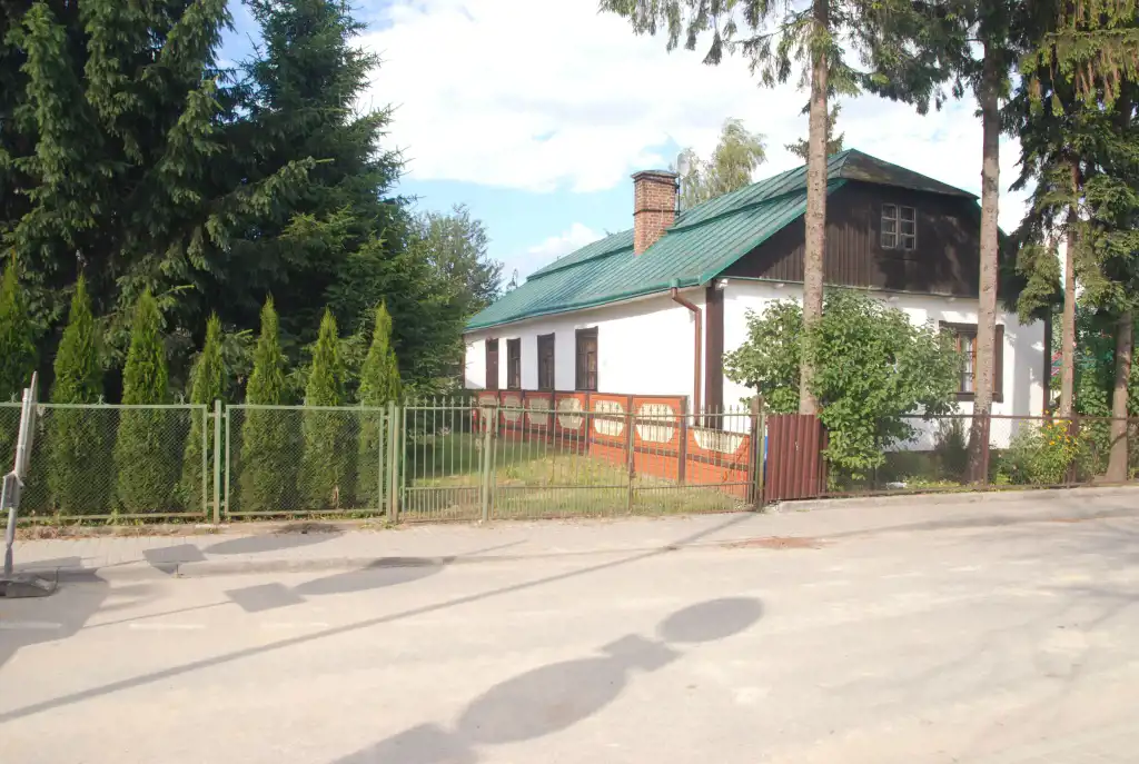 Budynek z lat 70-tych, parterowy z poddaszem użytkowym, w 1/3 podpiwniczony.