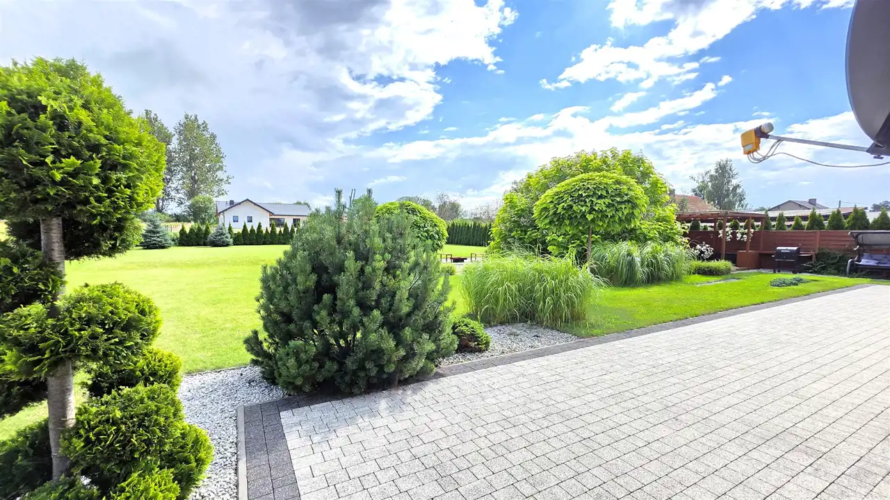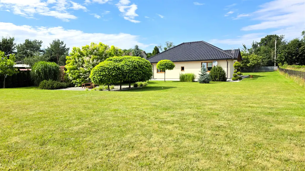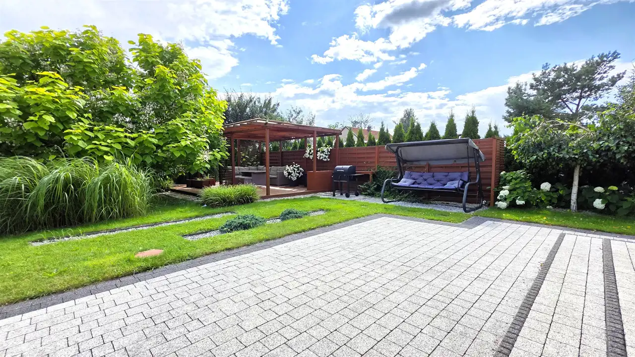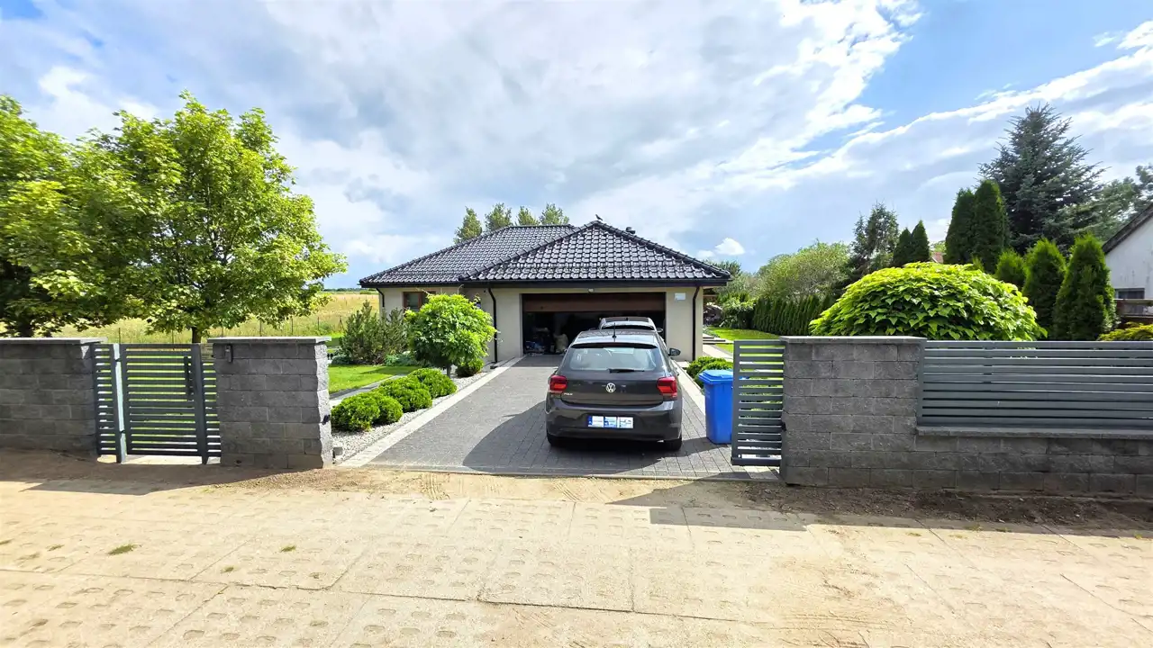 Wolnostojący dom parterowy o powierzchni użytkowej 156,47m2, położony w centrum miejscowości Brzeźno Lęborskie, ul. Jaśminowa (opodal Kościoła P.W. Św. Apostołów Piotra i Pawła). Usytuowany jest na dużej, pięknie zagospodarowanej działce o powierzchni 2116m2, obsadzonej licznymi drzewami i krzewami.Dom składa się z:
