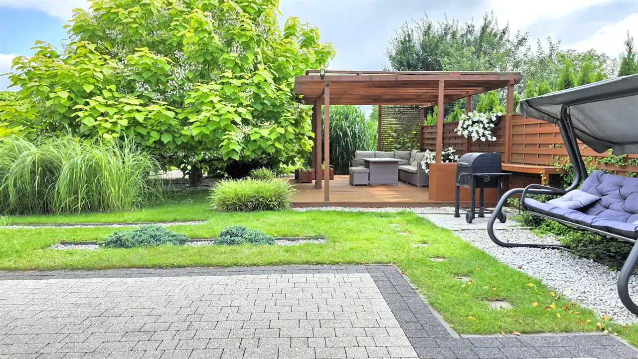 - Działka częściowo zagospodarowana, płaska