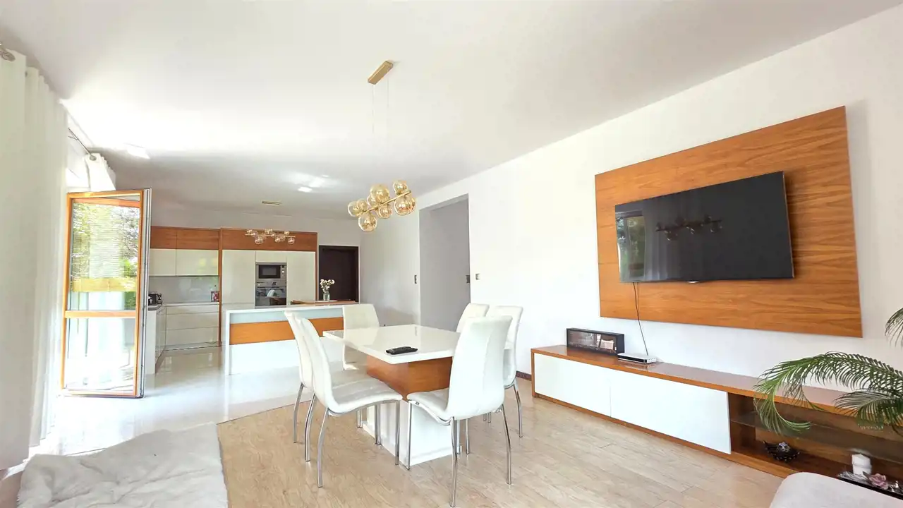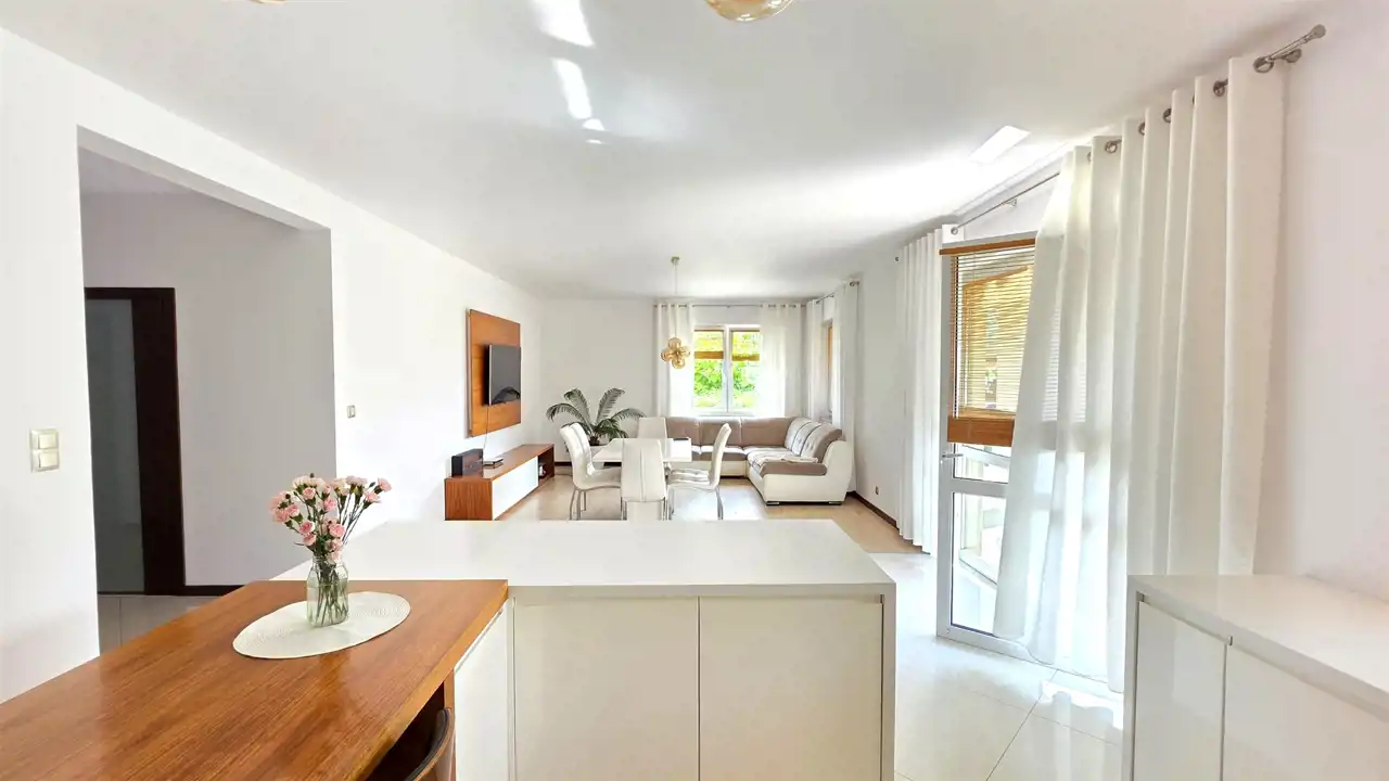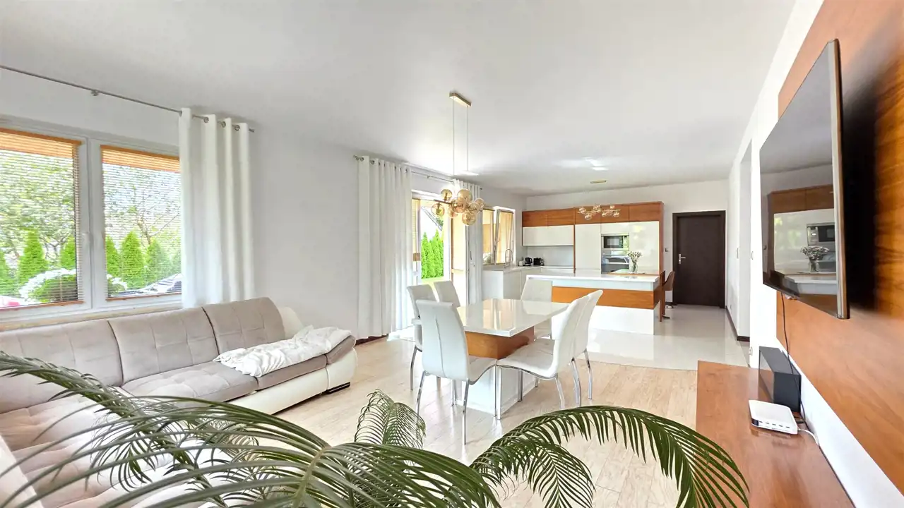 - przestronnego pokoju dziennego połączonego z zabudowanym aneksem kuchennym z wyjściem na taras,