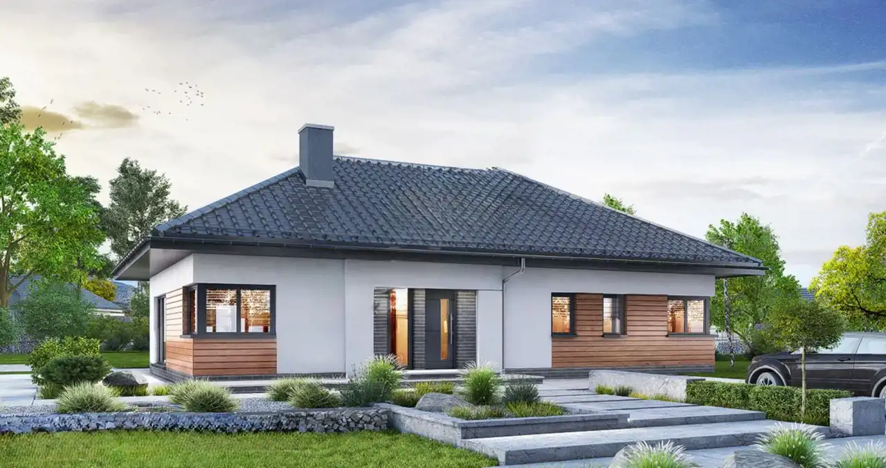 - nowoczesny budynek jednorodzinny o powierzchni użytkowej 123,78 m2, wybudowany w technologii murowanej, dach z wykonaną więźbą dachową