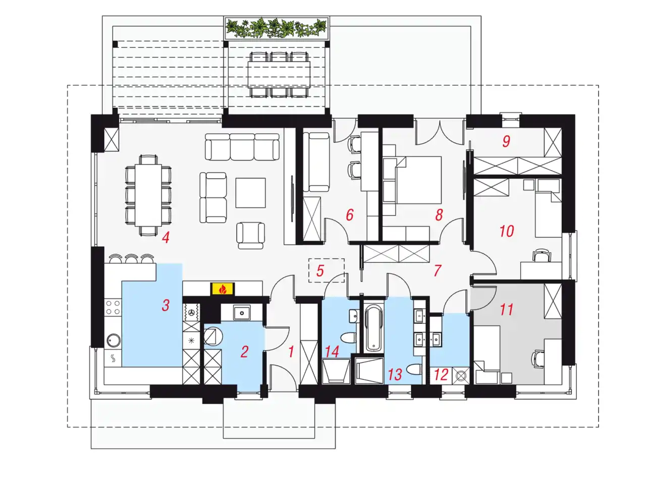- kotłownia z kominem (zaprojektowany piec na pelet)
