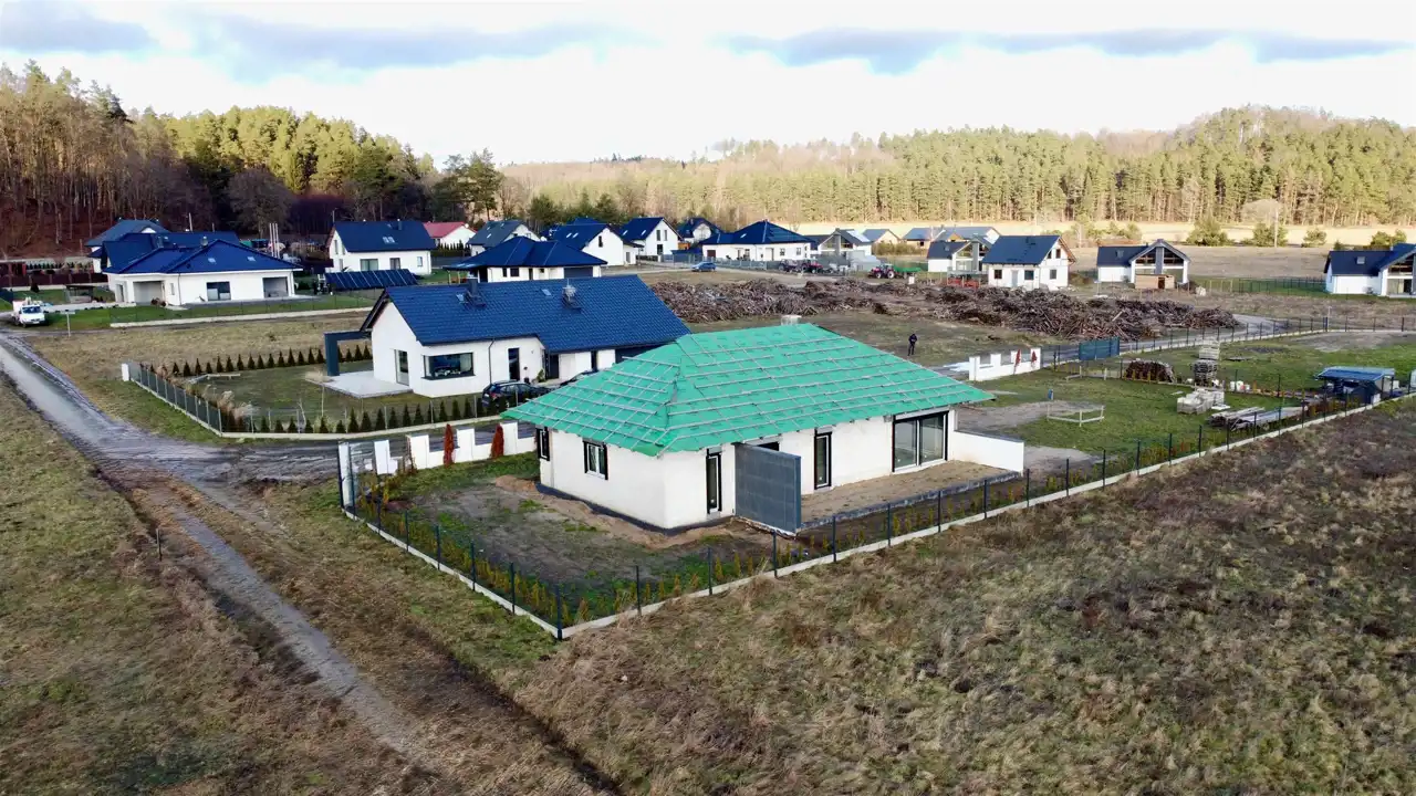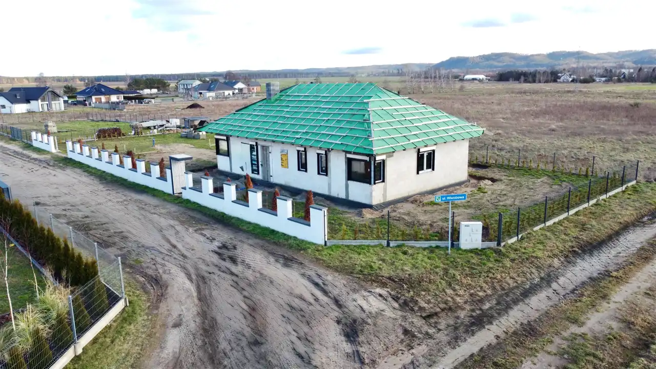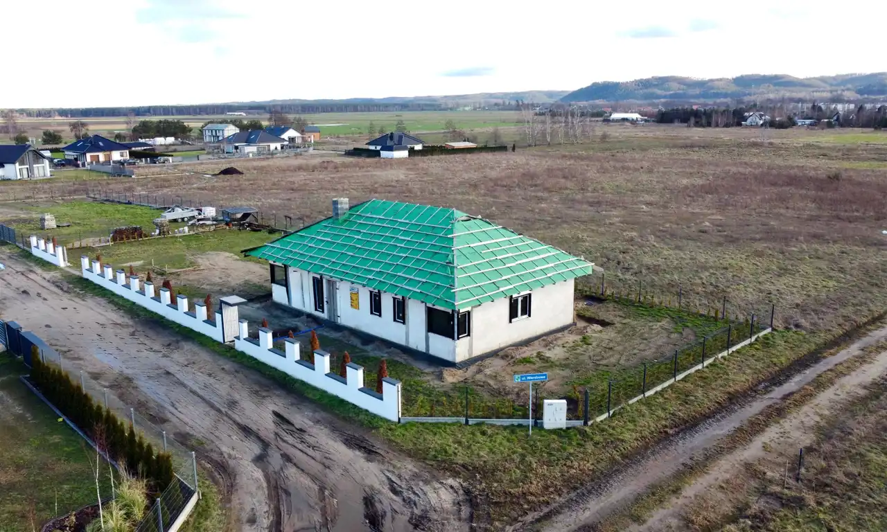 - stan wykończenia budynku – zamknięty w wykonaną instalacją elektryczną, drzwi wejściowe antywłamaniowe, okno przesuwne w salonie bezprogowe HS.