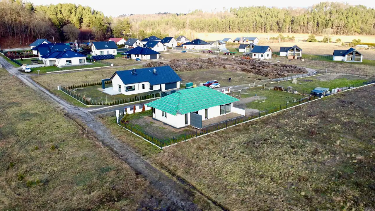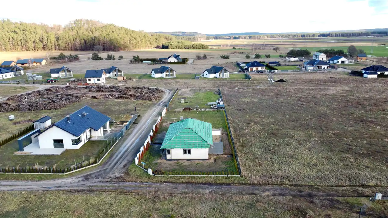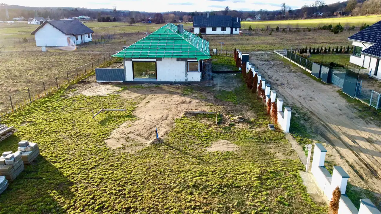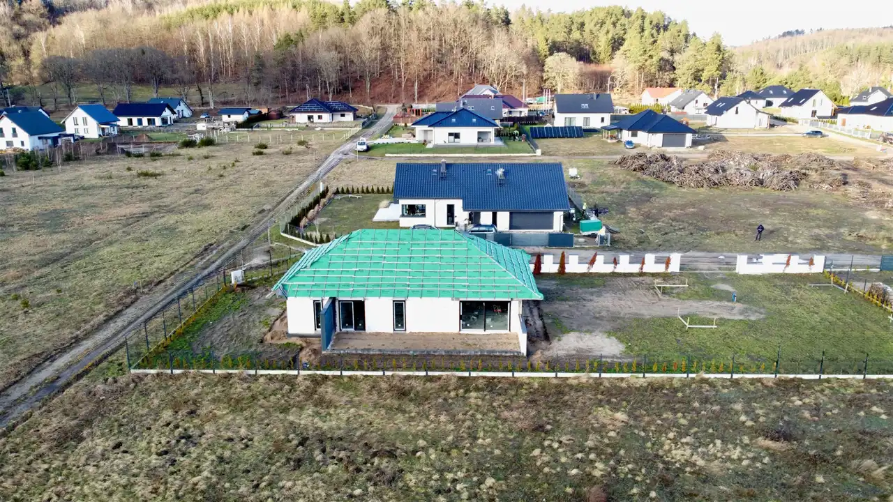 - stan wykończenia budynku – zamknięty w wykonaną instalacją elektryczną, drzwi wejściowe antywłamaniowe, okno przesuwne w salonie bezprogowe HS.