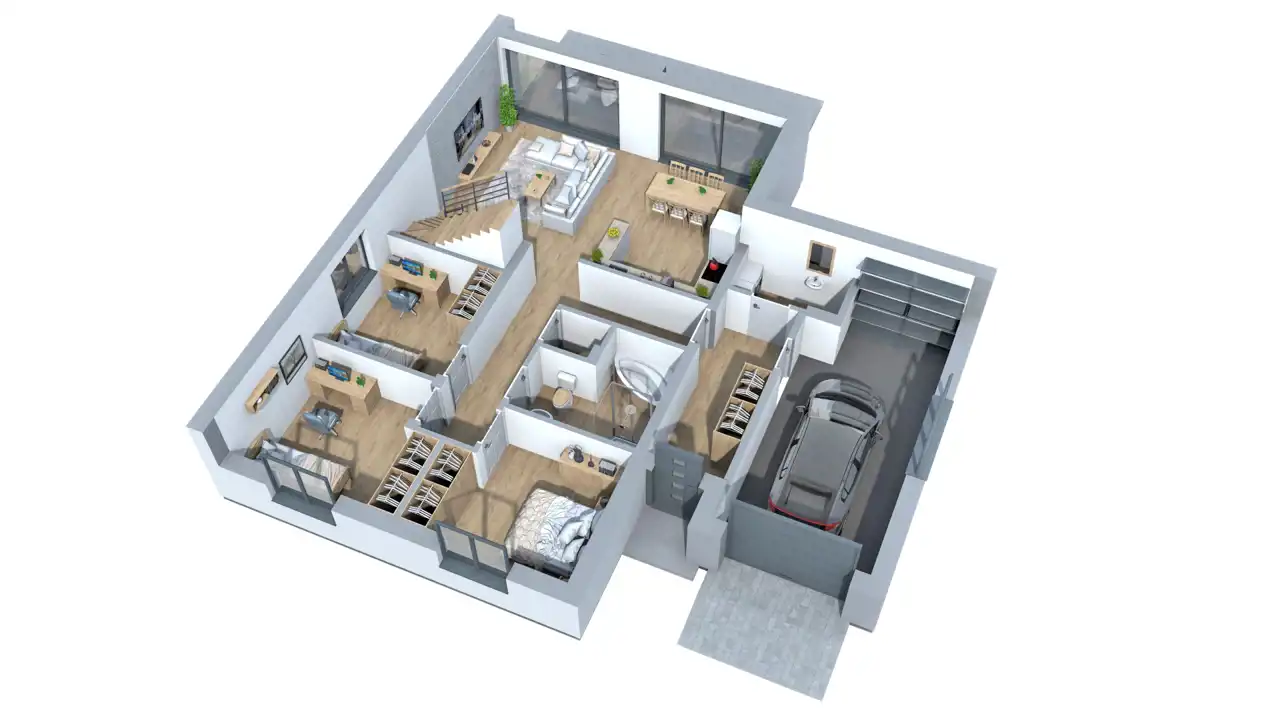 - Rodzaj domu bungalow z poddaszem użytkowym