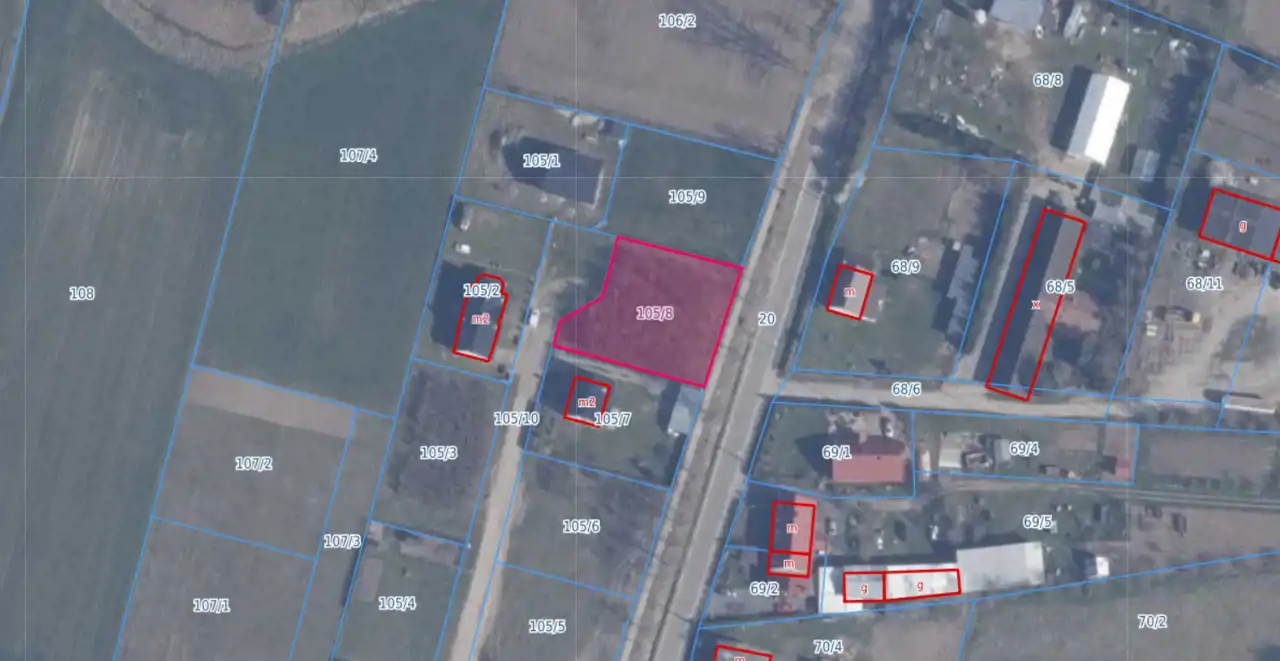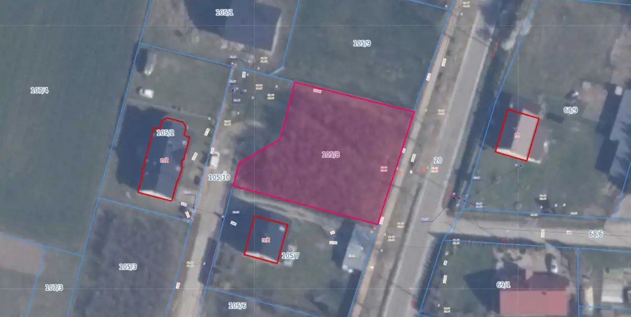 Działka posiada przyłącze kanalizacyjne, a woda i prąd znajdują się w pobliżu granicy działki.